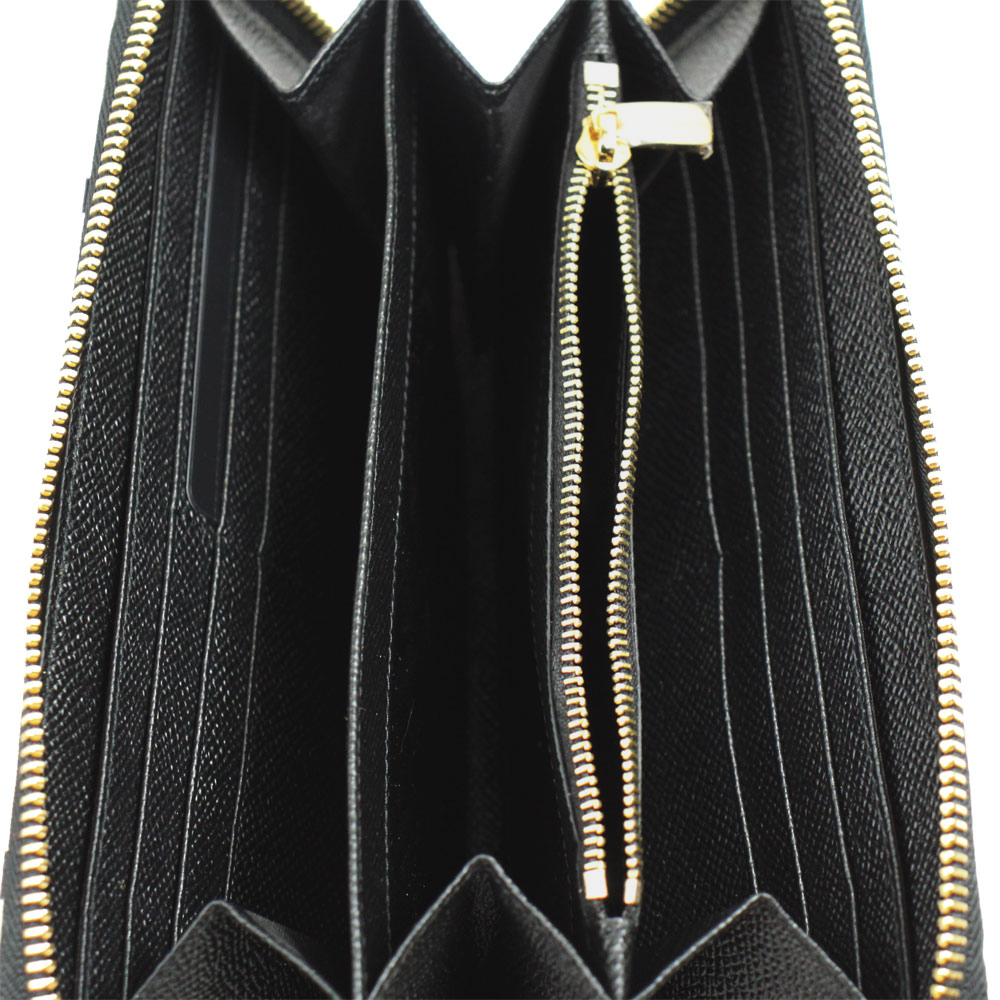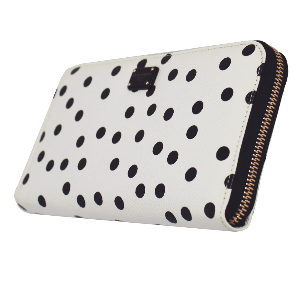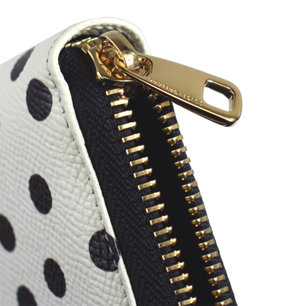 | ドットプリント(水玉)をあしらった型押しレザーが印象的なドルチェ&ガッバーナの長財布です。 ラウンドファスナーを開けると、仕切りの代わりにもなるジップポケットと十分なマチ付きスペースと 収納も充実したデザインです。 | |