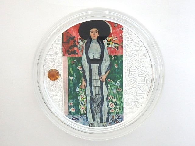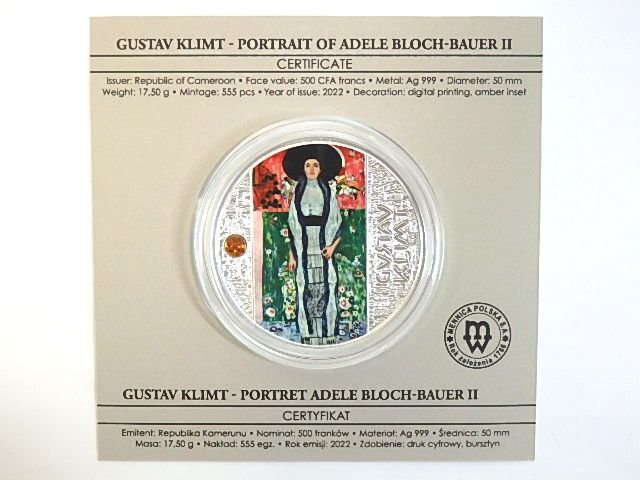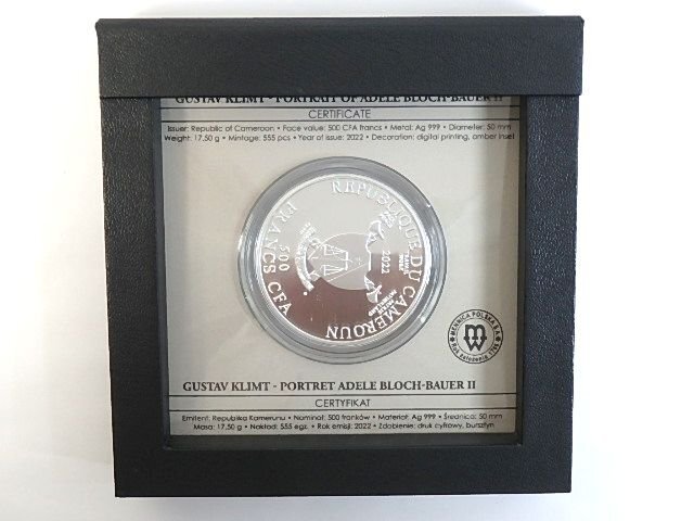 2022 カメルーン グスタフ・クリムト「アデーレ・ブロッホ=バウアーの肖像 Ⅱ」 500フラン銀貨 プルーフ 彩色 琥珀付きです。
