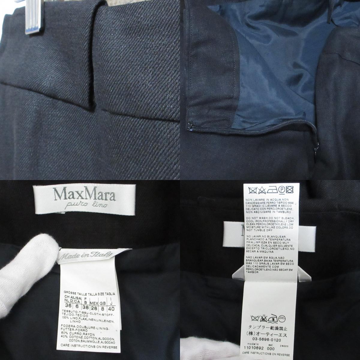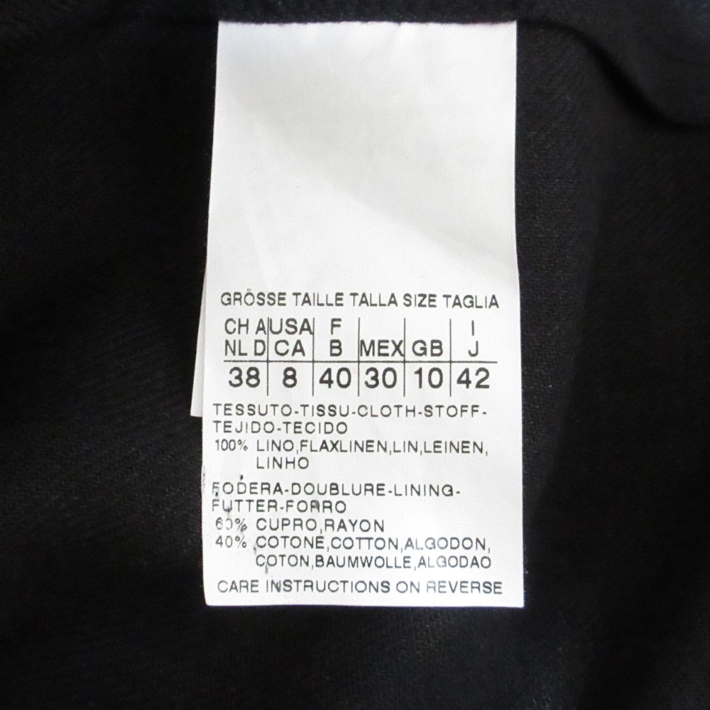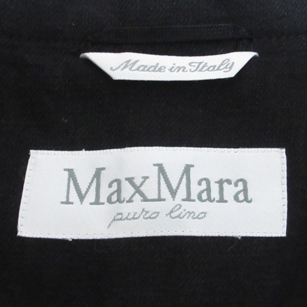 美品 Max Mara マックスマーラ リネン100% シングルジャケット+ひざ丈スカート セットアップ スーツ 42/40 ブラック