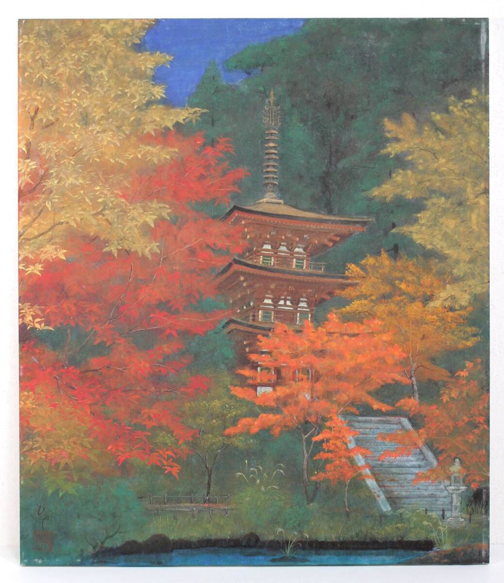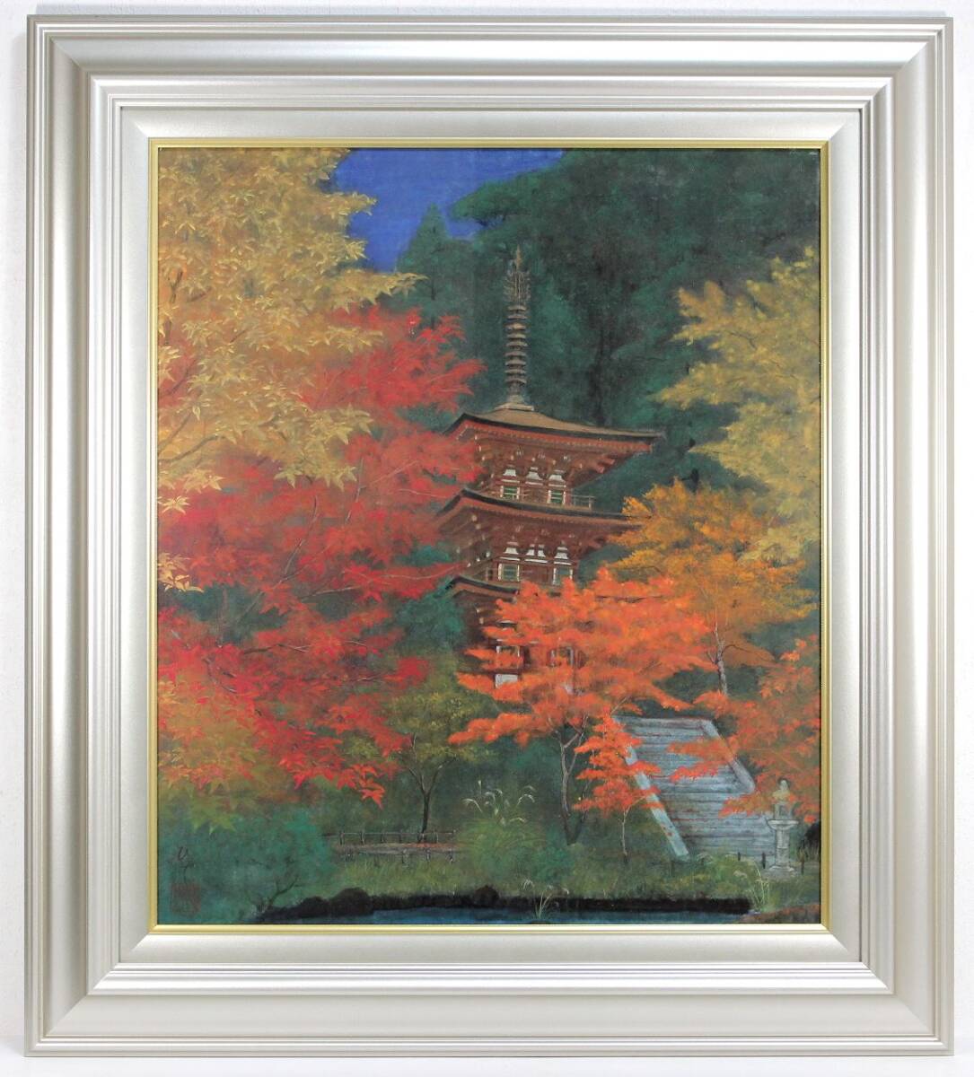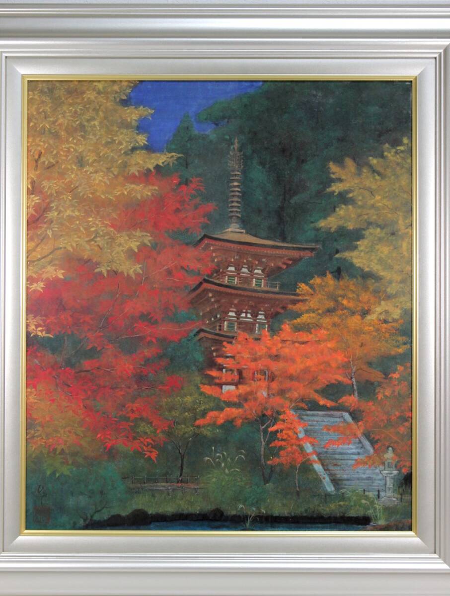 【真作】 内田英湖『錦秋浄瑠璃寺(奈良)』 直筆サイン 共シール 日本画 絵画 額装 額寸/約70×62.6cm 画寸/約53×45.6cm 10号 山梨県出身