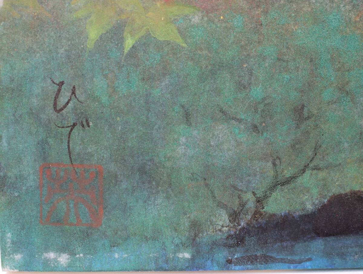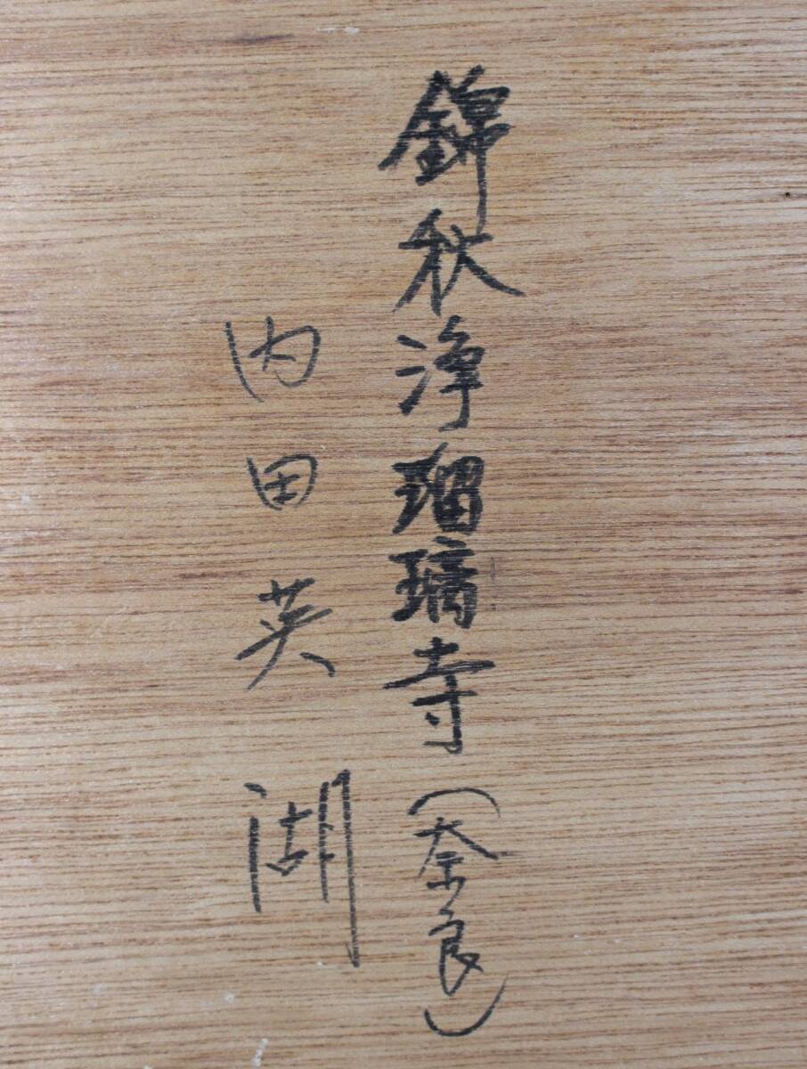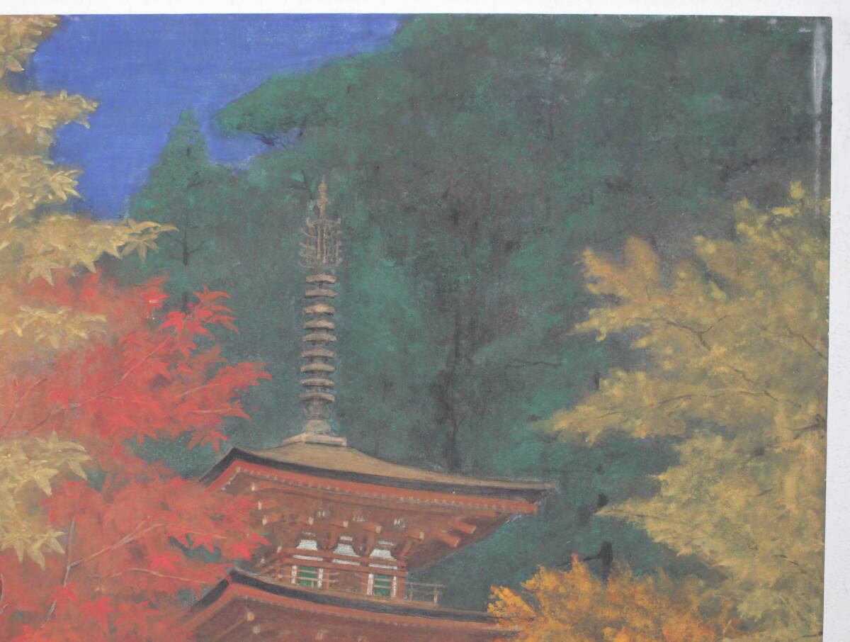 【真作】 内田英湖『錦秋浄瑠璃寺(奈良)』 直筆サイン 共シール 日本画 絵画 額装 額寸/約70×62.6cm 山梨県出身