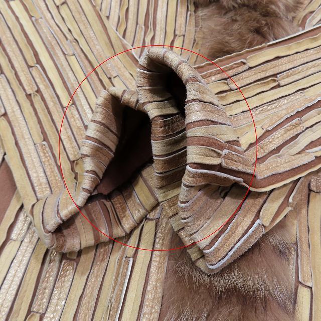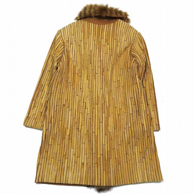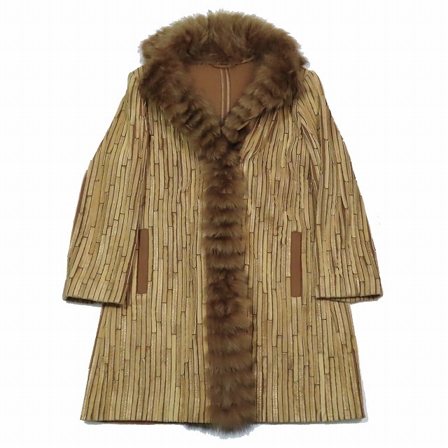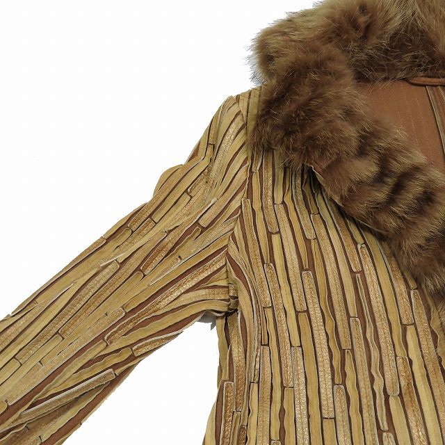 アルティマ AF Altima ラムレザー ラクーン 毛皮 ジャケット ブルゾン ロング丈 肩パッド 38 ブラウン系/17YBA11 レディース