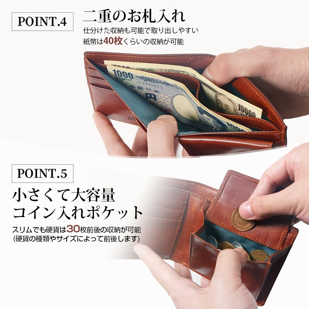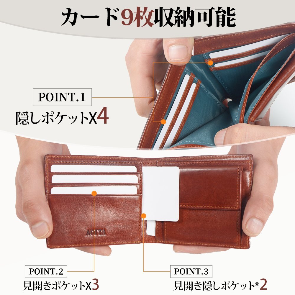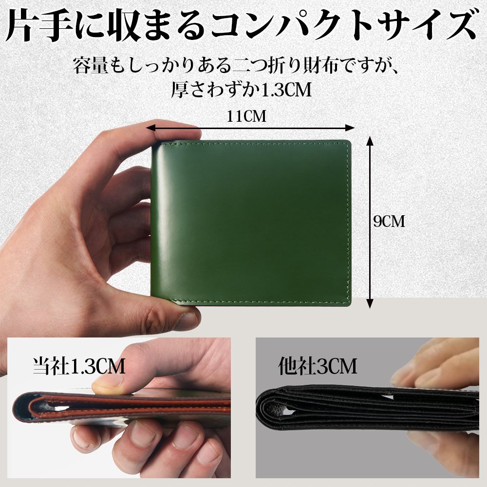 財布 メンズ 二つ折り コンパクト財布 カード収納 キャッシュレス 小銭入れ 多収納 本革 牛革 イタリア レザー メンズ財布 ミニ財布 男性