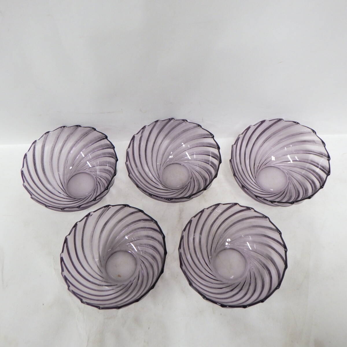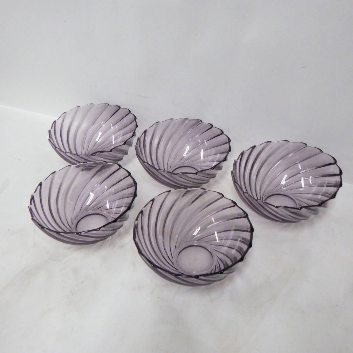 昭和 レトロ 紫 ガラス ポップ 小鉢 お皿 5点セット ウランガラス? ウラン? 詳細不明
