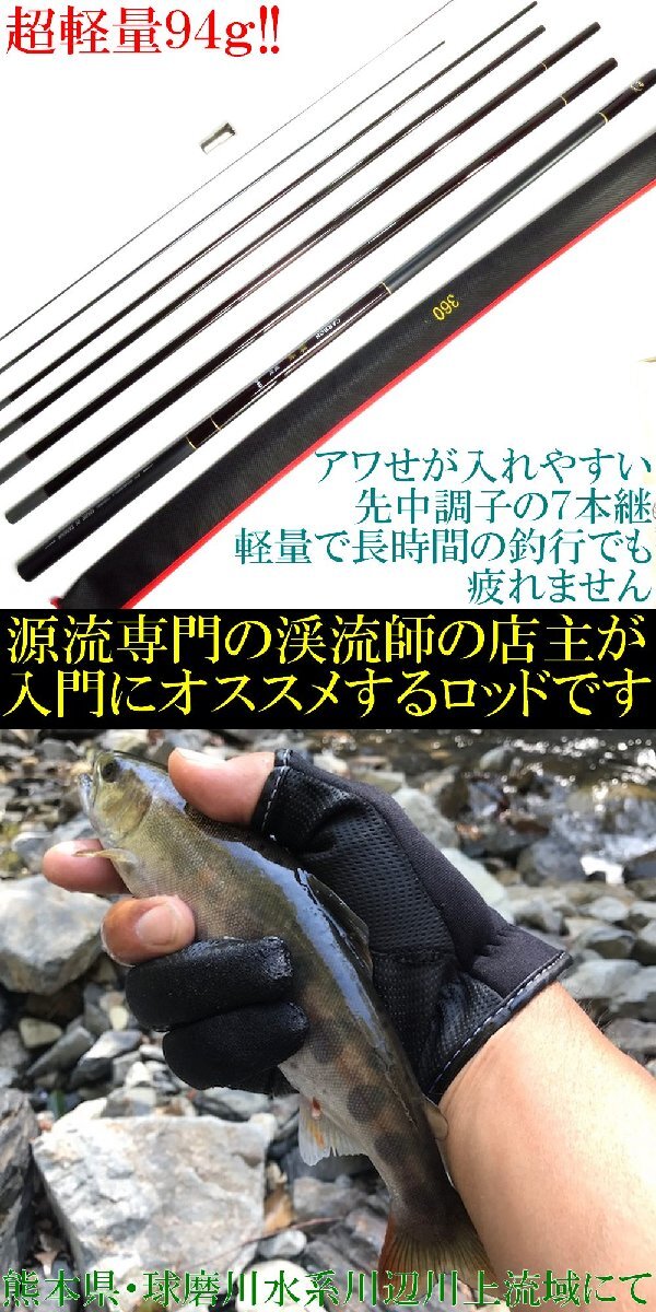 超軽量 94g カーボン 渓流竿 '' 祥雲360 '' 超硬 先中調子 3.6m 振出し竿 渓流ロッド 川釣り 【釣り具】ヤマメ アマゴ イワナ