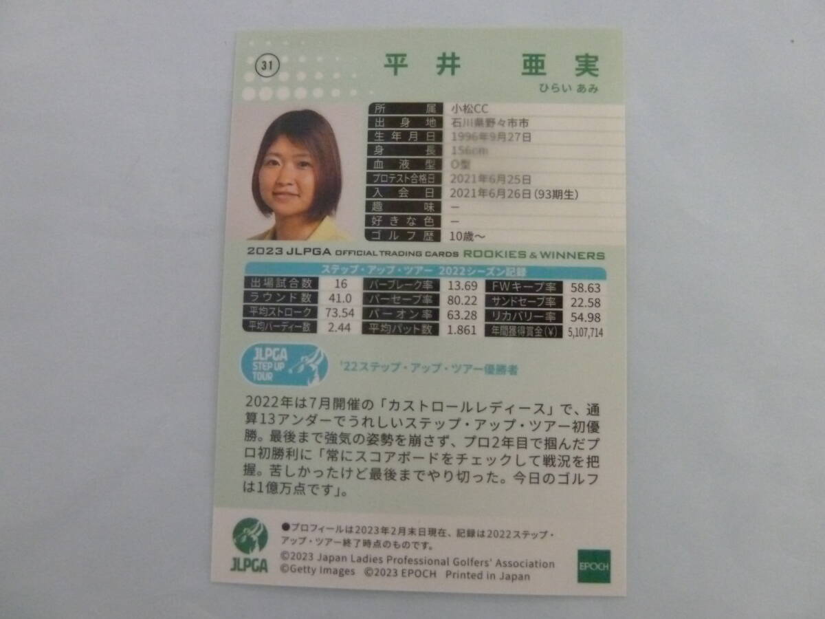 女子プロゴルフ 平井亜美プロ 直筆サイン入り2023 JLPGAオフィシャルトレーディングカード ROOKIES&WINNERS 激レア JLPGA ラスト1品!