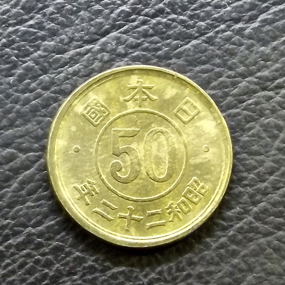 小型50銭黄銅貨 昭和22年 送料無料 (19974)硬貨 古銭 アンティーク 日本 貨幣 近代 コレクション コイン