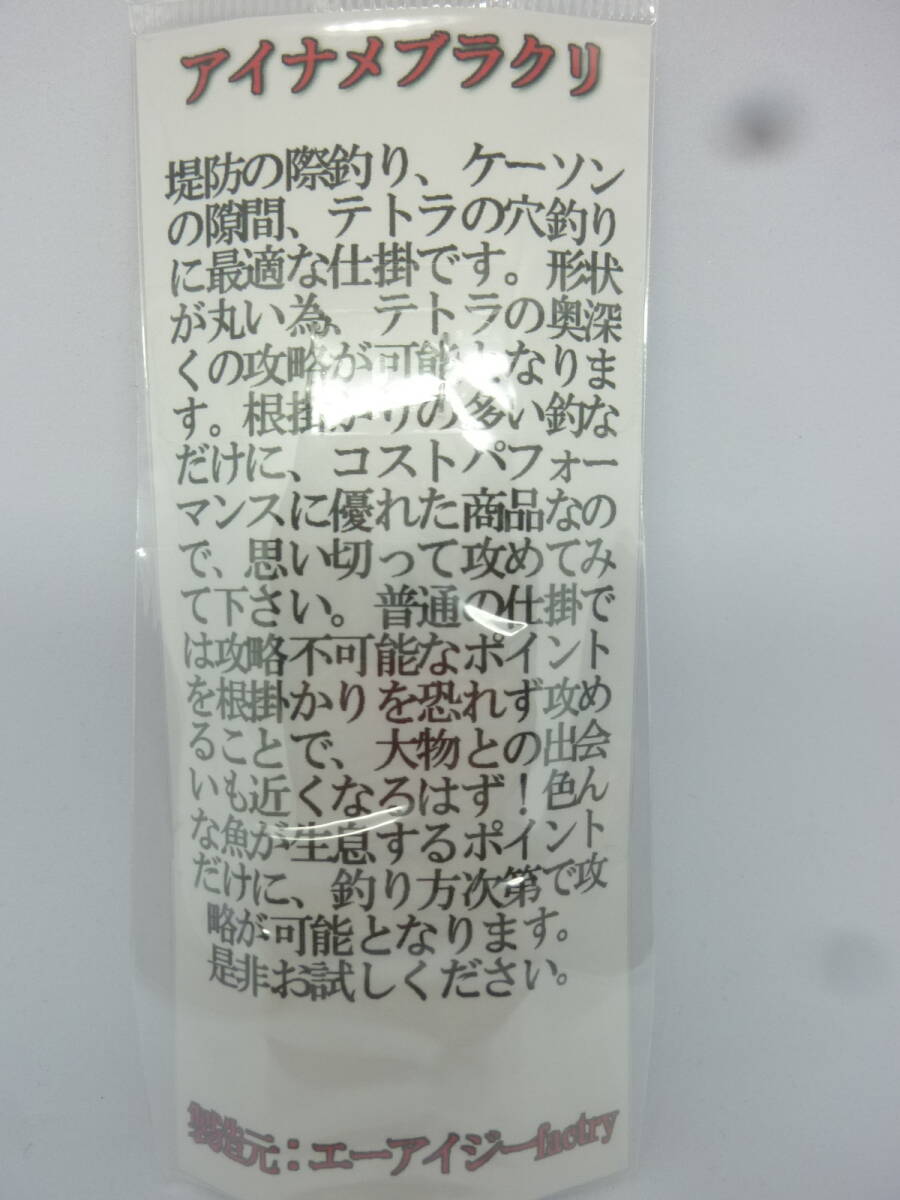 ◆テトラや、堤防の際を釣るのに最適で良く釣れる、丸型のブラクリになります。特にテトラでは、転がりながら海底に届きやすく、効果を発揮します。根掛かりの多い釣だけに、コストパフォーマンスに優れたこの商品を、是非ご利用下さい。限定販売に付き、無くなり次第終了と致します。お早めにお求め下さい。