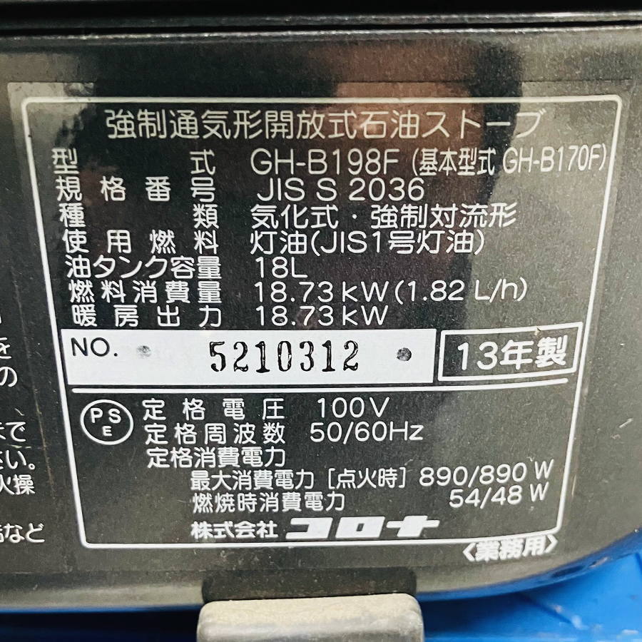 | 管理番号:1100000087207 メーカー:CORONA/コロナ 型番:GH-B198F 規格・仕様: 【仕様】 質量(kg):20.5 タンク容量(L):18.0 本体寸法(mm):722×470×622 燃料消費量(L/h):1.82~0.59 消費電力(W)(50/60Hz):点火時890/890 燃焼時(強~弱)54/48~30/36 暖房の目安:コンクリート66畳(109.0m2)まで 木造48畳(79.0m2)まで 暖房出力(kW):18.73~6.07 燃焼継続時間(h):強~弱 9.8~30.5 待機時消費電力(W):1.8 詳細備考: ・動作確認済みです。 【特徴】 ・厳しい寒さも輻射熱と温風のダブルパワーでパワフルに暖めます。 ・リニアインバーターシステムで、着火と同時にフルパワー燃焼を実現。 ・ダブルUターン方式で、いやなニオイを減少。燃焼中は自己燃焼熱の一部を気化筒に伝え、その熱で気化筒を高温に保ちます。このため、ヒータはほとんど通電されることなく省エネ性に優れています。遮音性がよく、運転音が静かです。 商品は写真に写っているもので全てです。(※背景などにある無関係の物は含まず) 他に付属品はありません。 ご質問はお気軽にどうぞ。分かる範囲でお答えします!! ※上記は型番などから調べたデータを抜粋したものです。 |