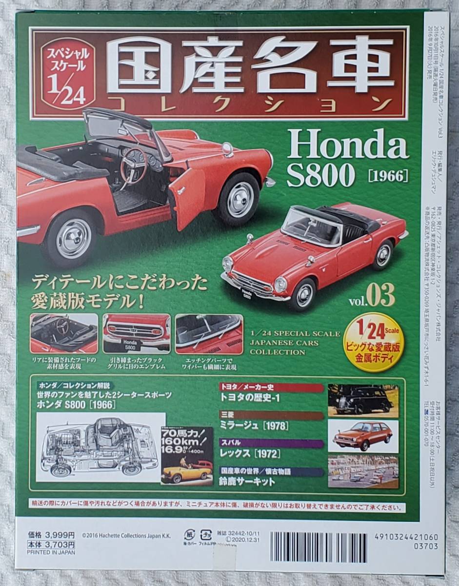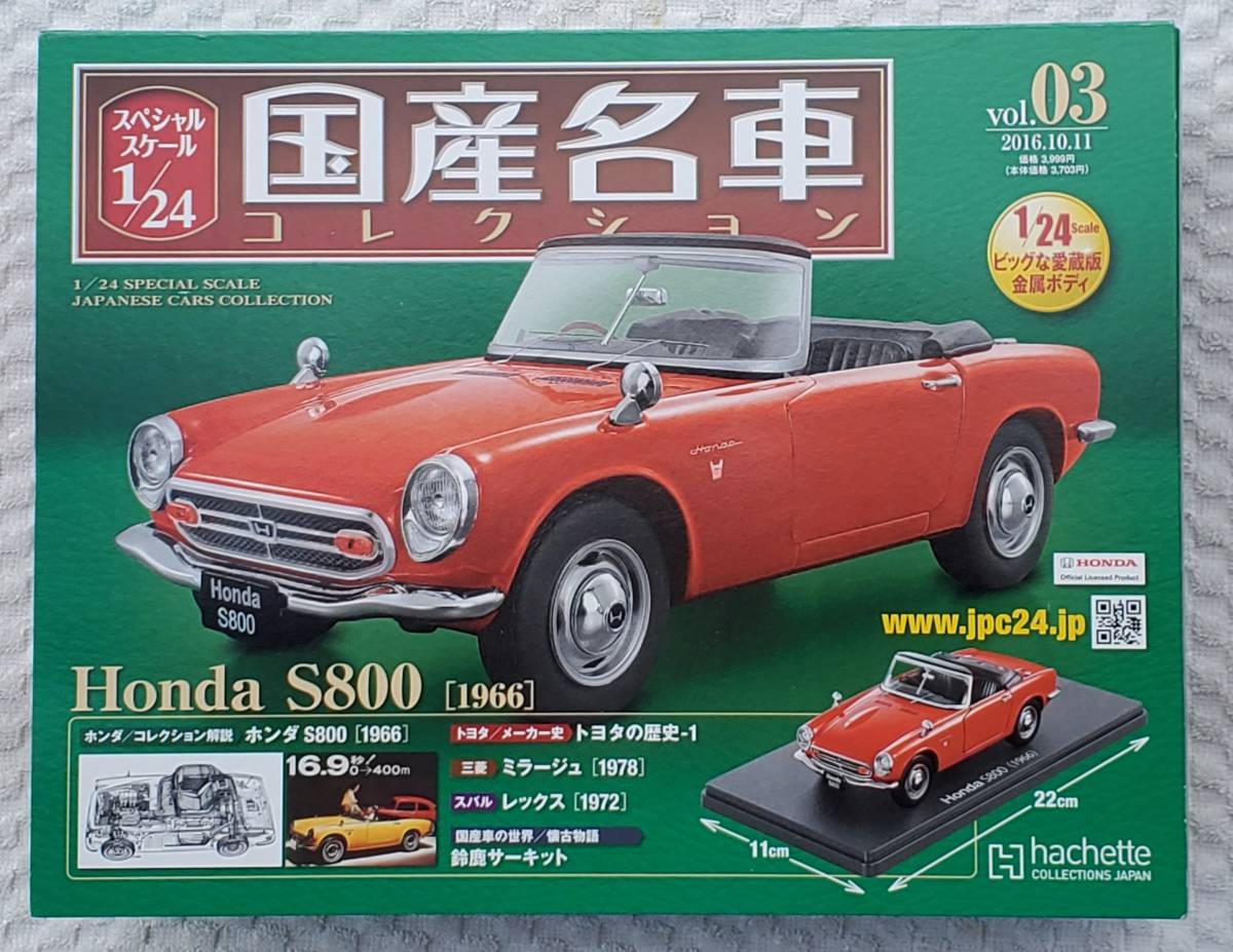 アシェット 1/24 国産名車コレクション ホンダ S800 1966年式 ミニカーになります。