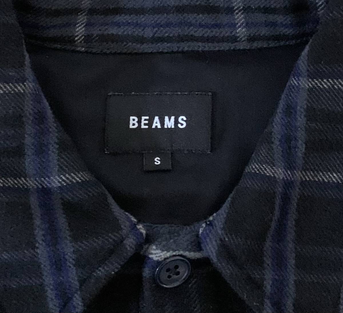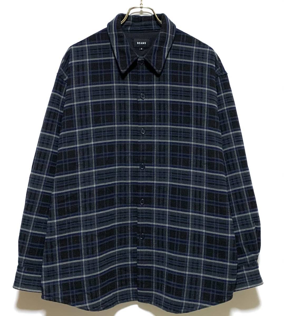 BEAMS フランネル シャツ ジャケット(S)ネイビー チェック ビームス ネルシャツ オーバー ビッグ サイズ 厚手