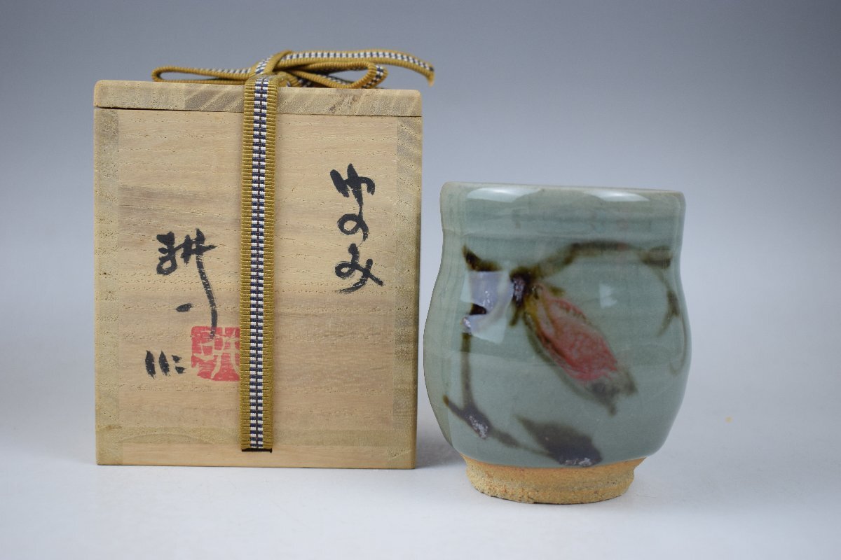 【人間国宝 田村耕一 ほたるぶくろ文 湯呑 共箱 真作保証】
