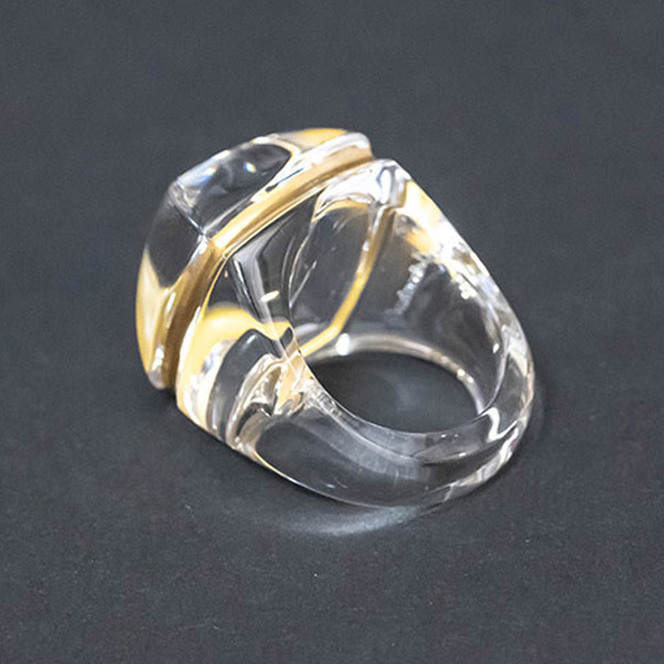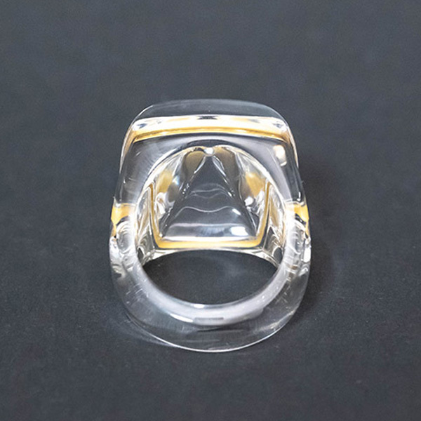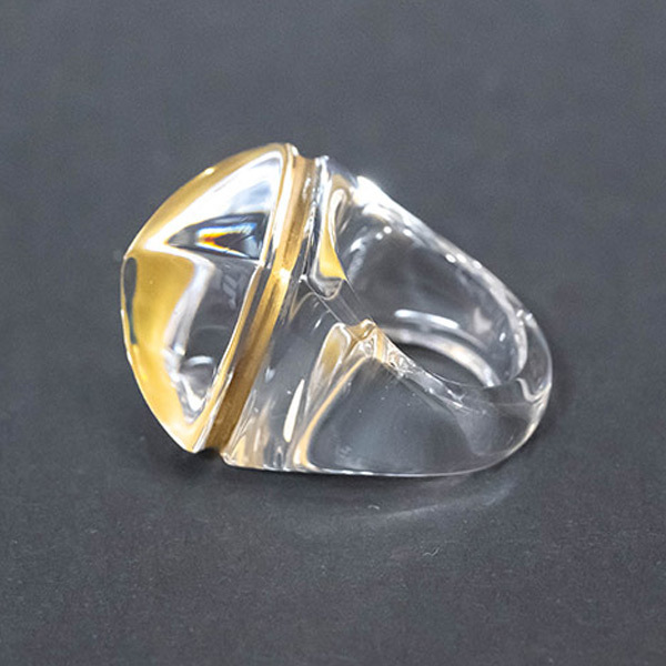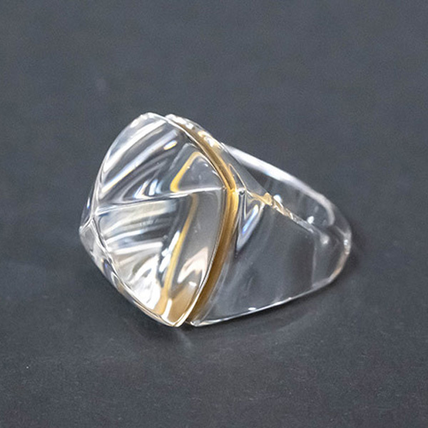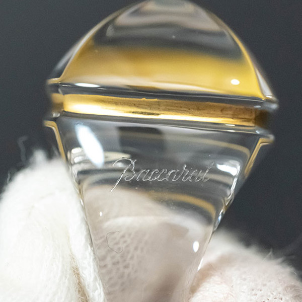 フランスを代表するクリスタル・ガラスメーカー、バカラのスクエアカットのクリスタルリング(クリア)。 ミニマルなピラミッド型のシェイプにゴールドのラインが施されたリング。大きく存在感がありますが、クリアカラーで服装を選ばず使えて便利です。サイズは13号になります。 ■サイズ 13号 ■付属品 箱、保存袋、シオリ ■状態 A(美品):使用感のない、非常に状態の良いお品物です。 |