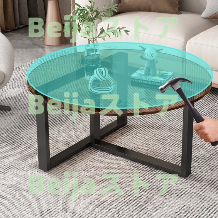 【高い透明性】ローテーブルは3C防爆認定強化ガラス製で、高温耐性、耐スクラッチ性、安全性、防爆性があり、透明性が高く、コーヒーテーブルや床の装飾に非常に適しています。美しく見えます。