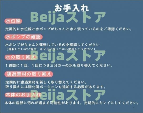 ※1週間に1回、1回につき三分の一の水を取り替えてください。