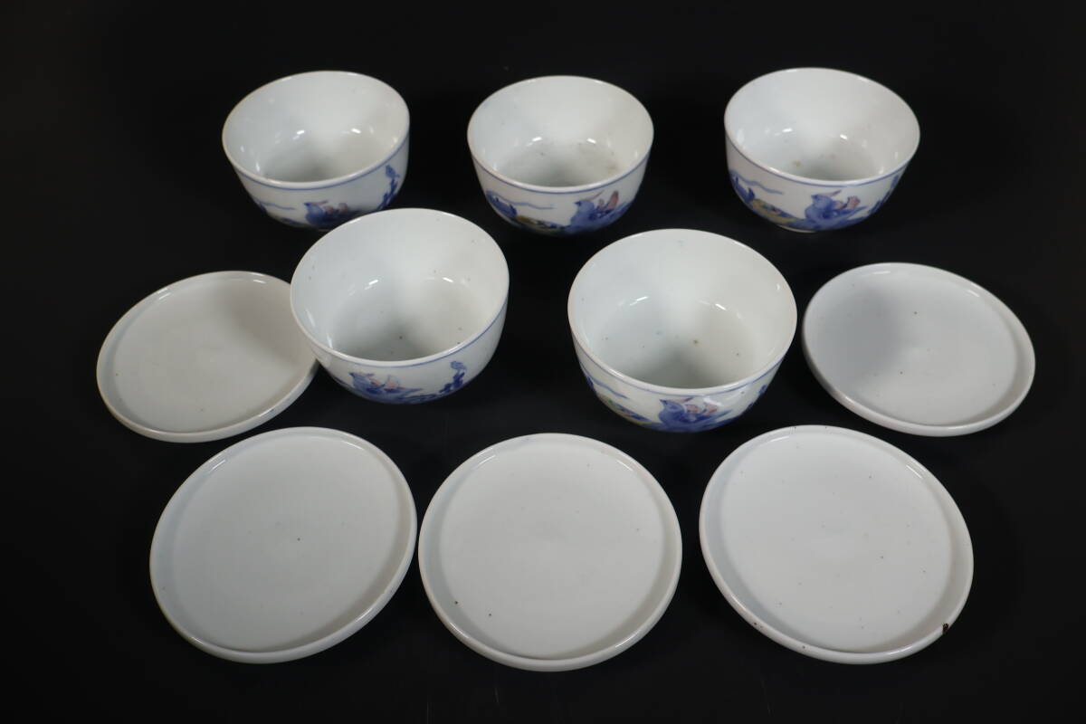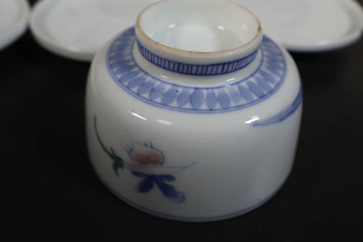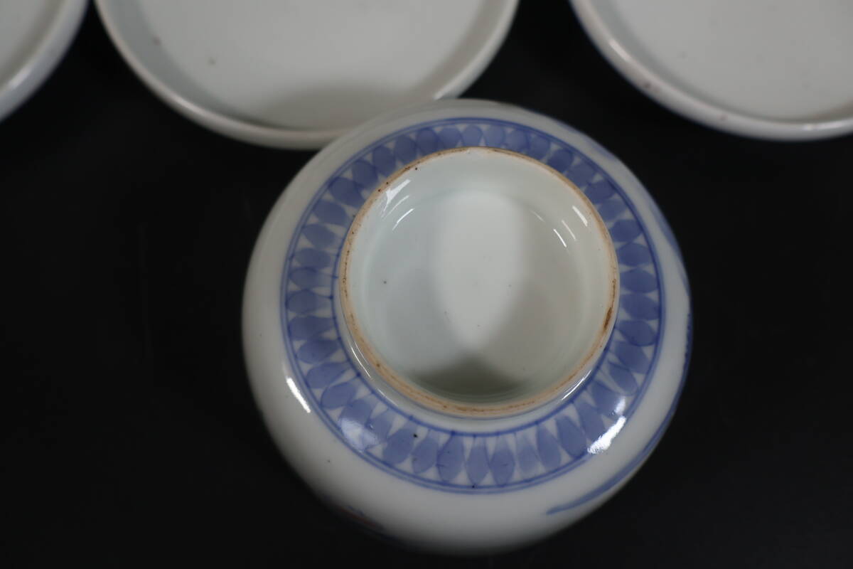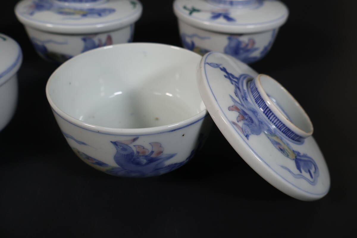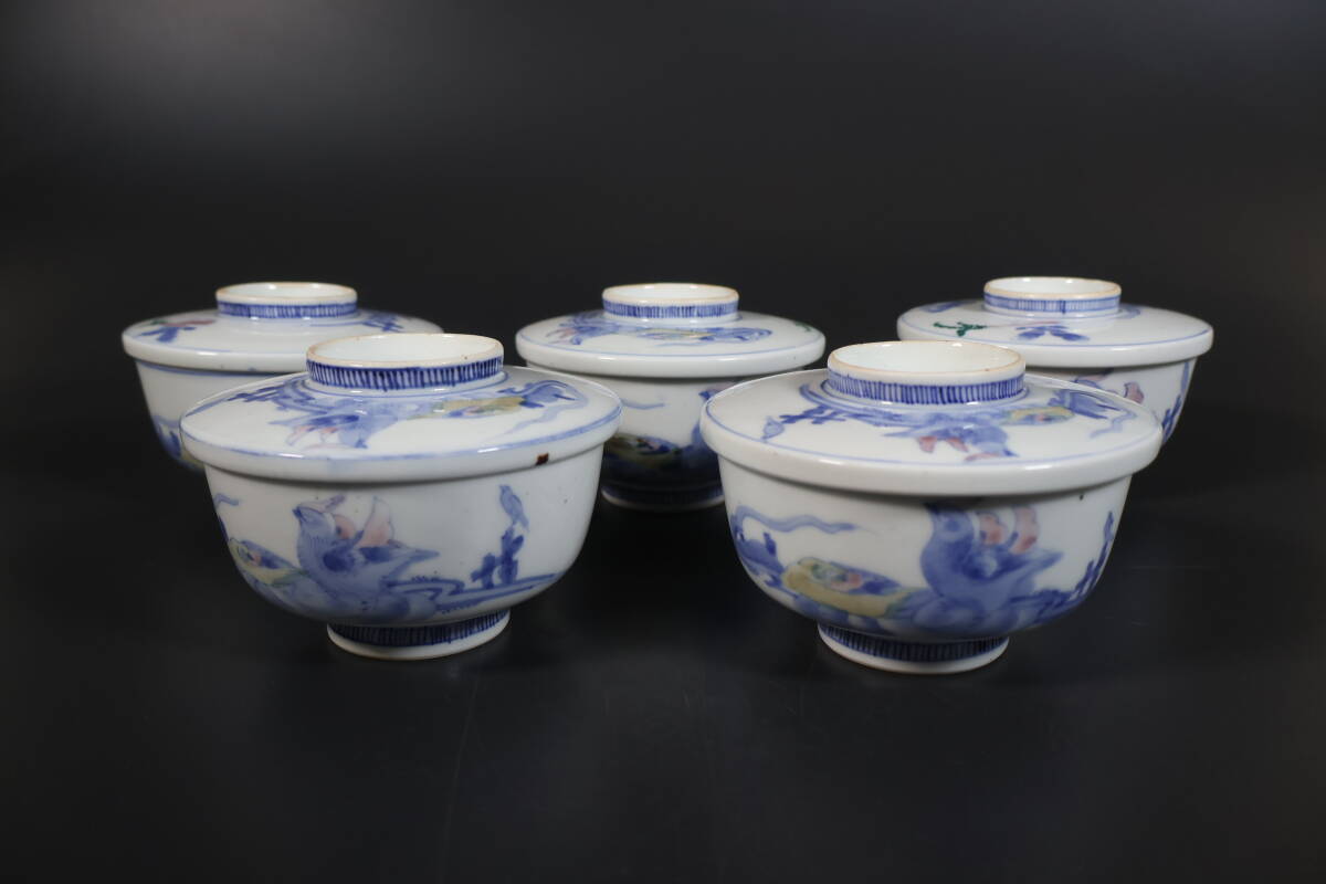【和】(A1379) 時代古作 色染付鳥図蓋物茶碗 五客揃 伊万里 瀬戸