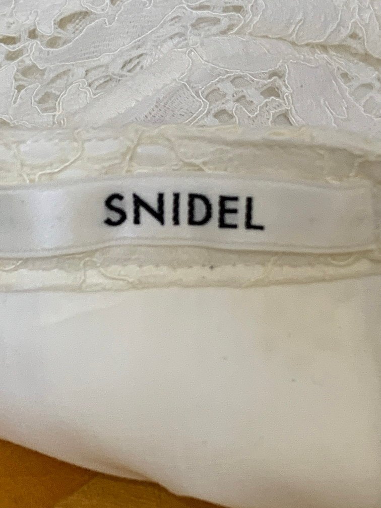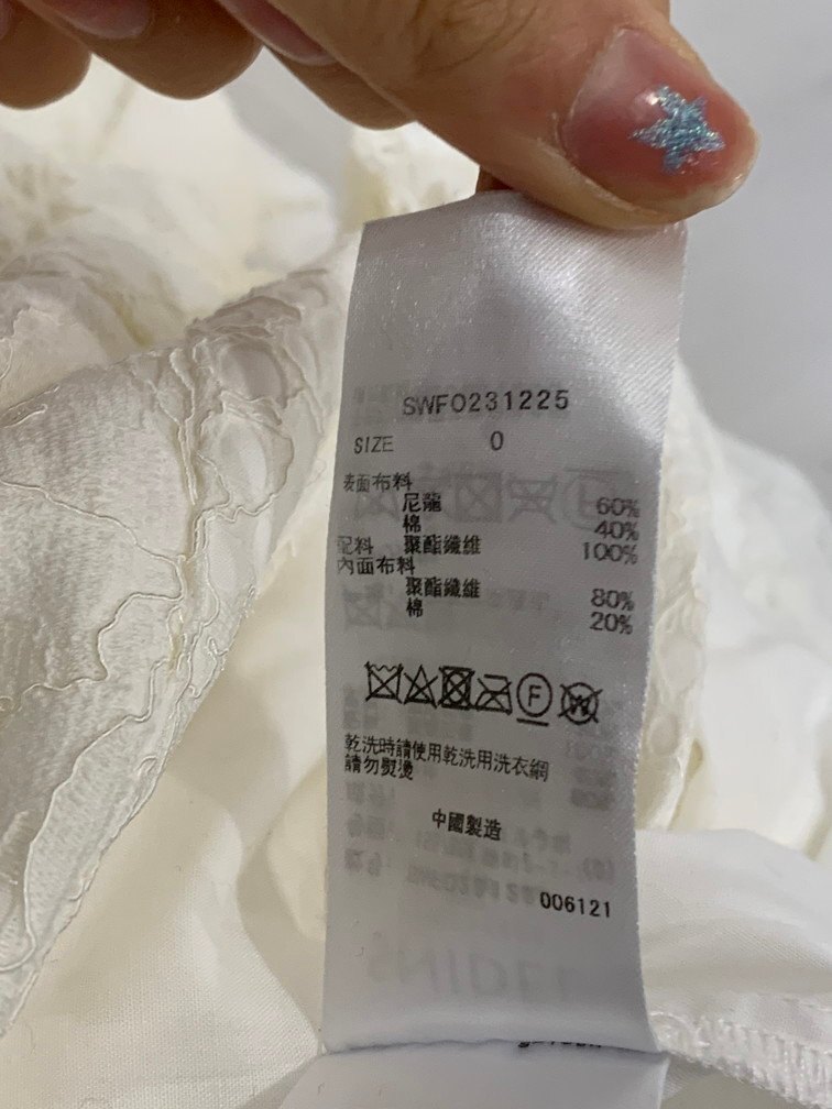 | 状態 | SNIDEL パフスリーブ レース フリル ボタンワンピース SWFO231225です。 中古品。下から2,3番目のボタン欠品の為特価 |