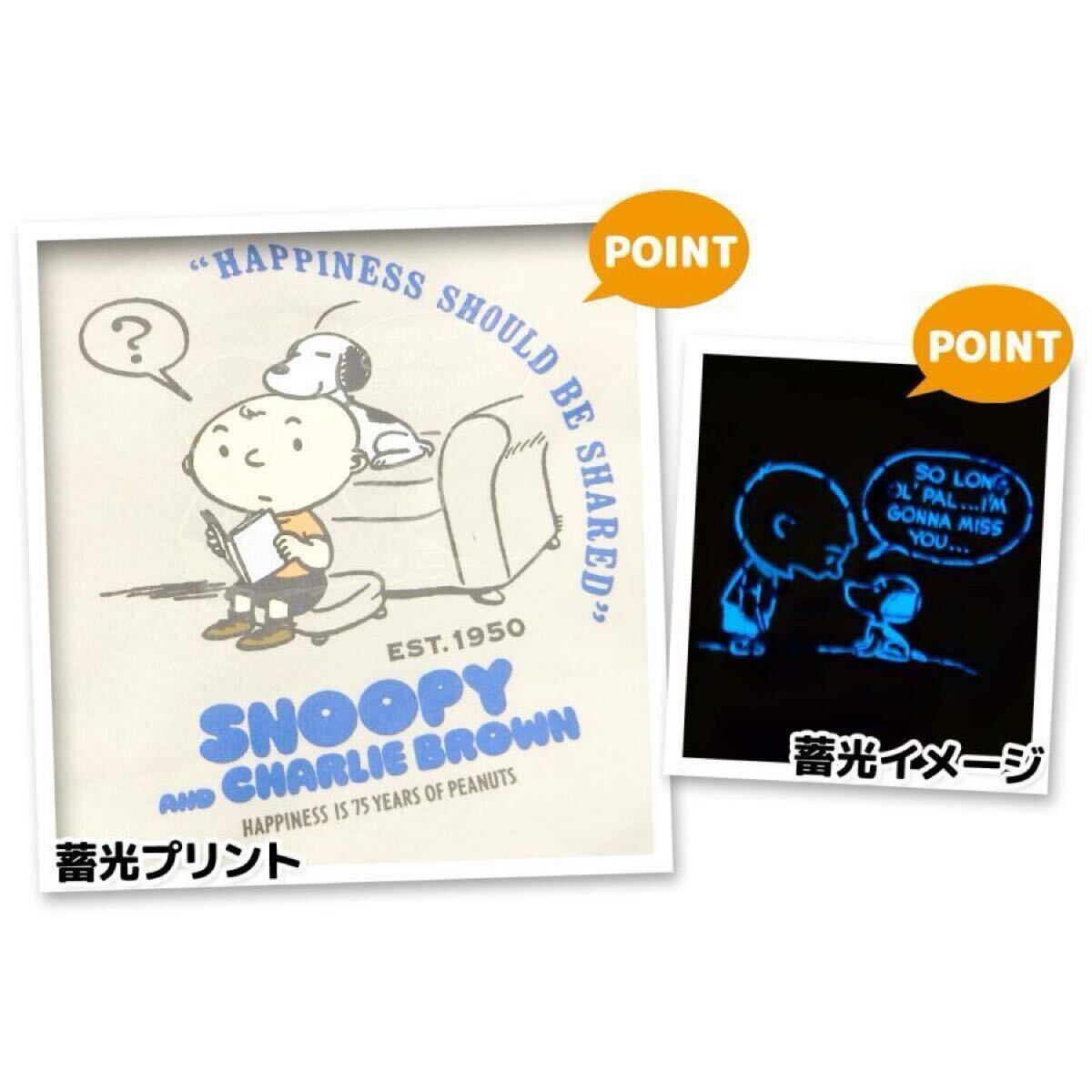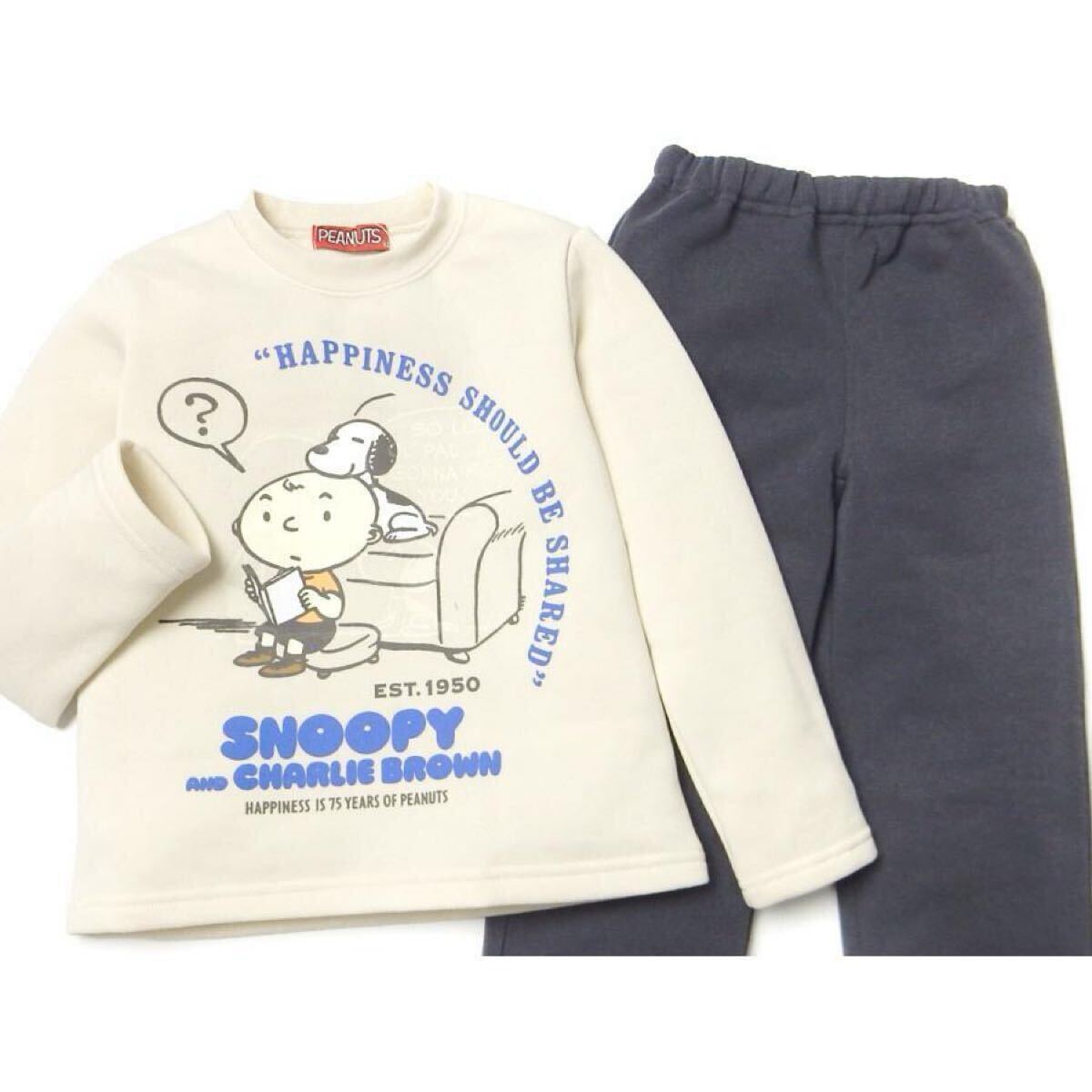新品63554 スヌーピー&チャーリーブラウン 100cm ベージュ蓄光長袖裏起毛パジャマ光るパジャマ かぶり裏シャギーパジャマ秋冬ルームウエア