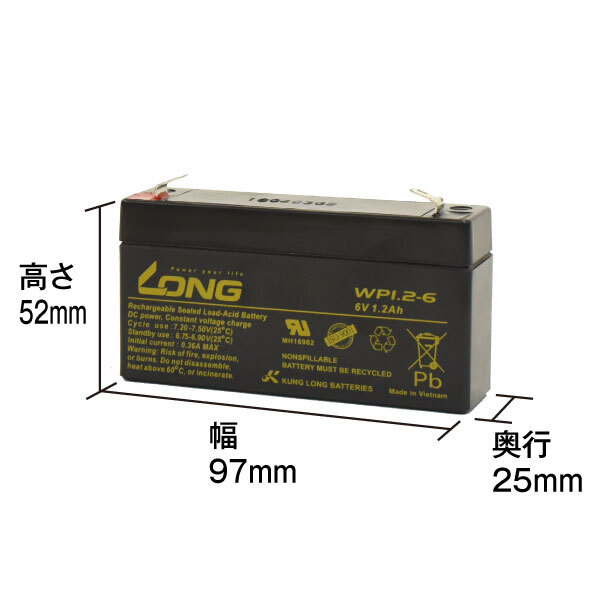 LONGサイクルバッテリー WP1.2-6 [ NP1.2-6 UB613 PC612 対応] 保証付
