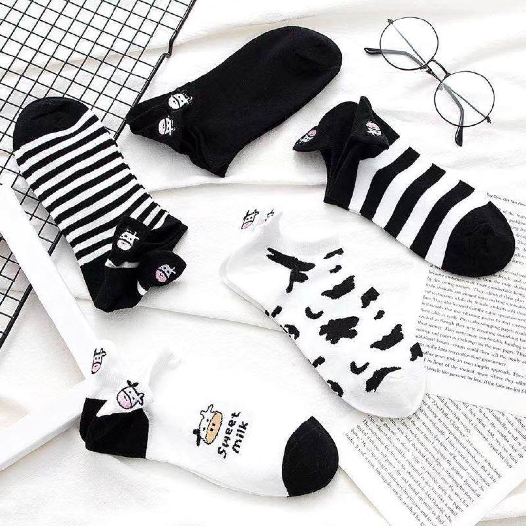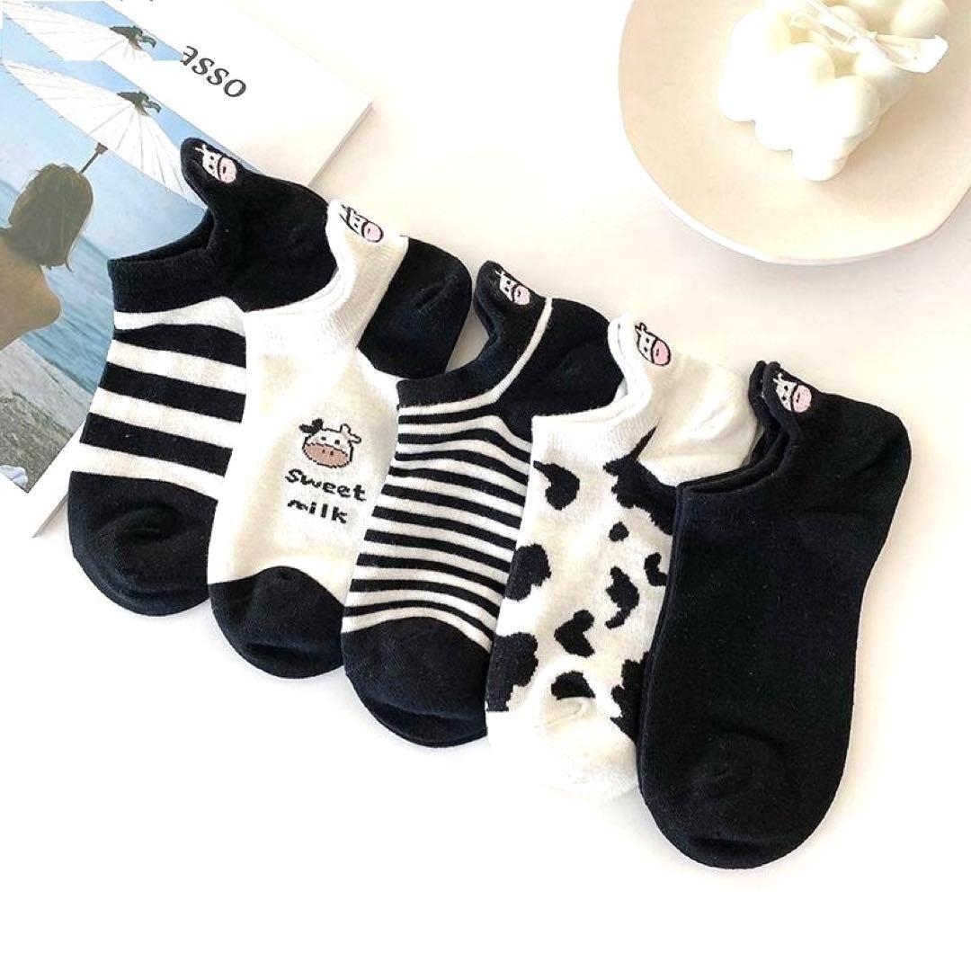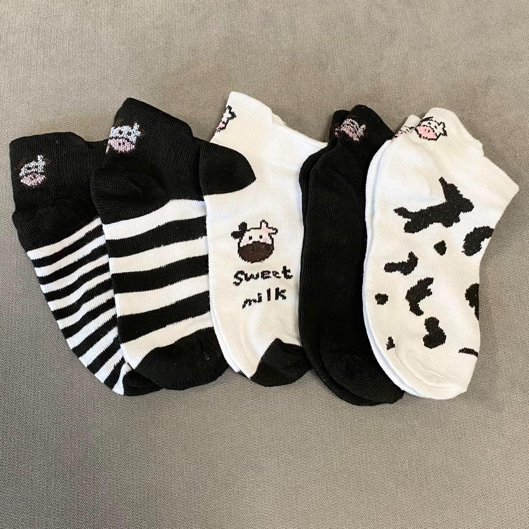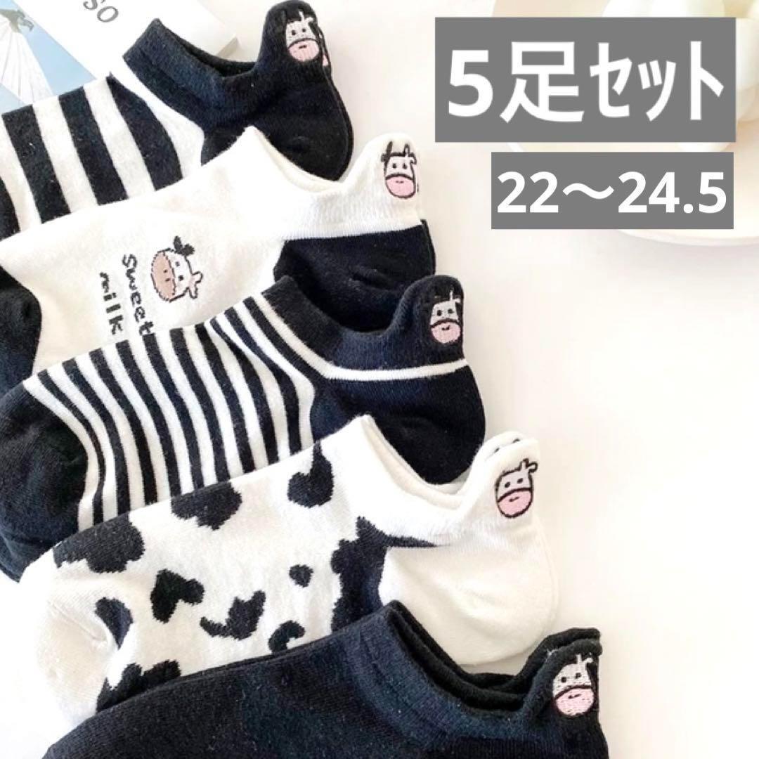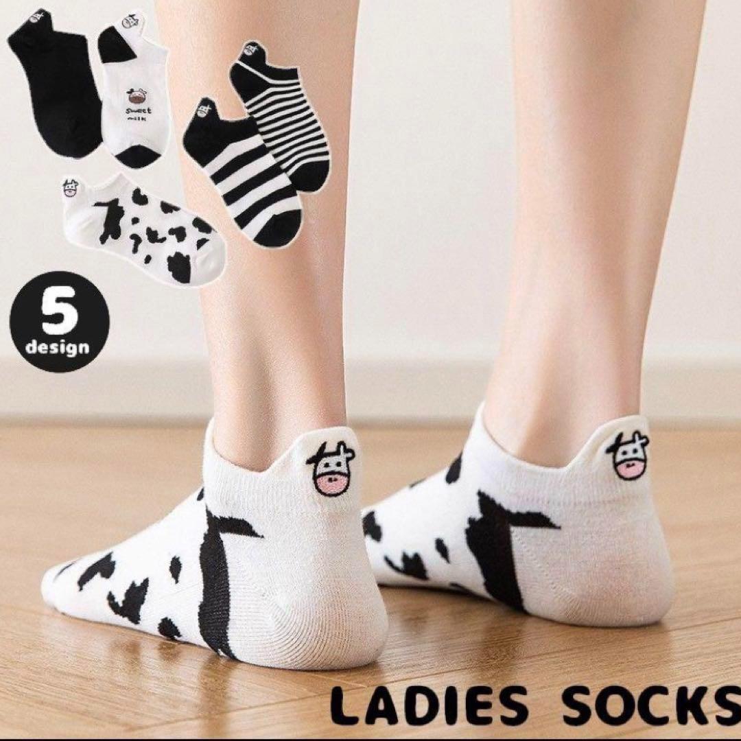 靴下 レディース まとめ売り ソックス 5足セット ショートソックス ミドル丈 牛柄 かわいい オシャレ まとめ買い お買い得 スニーカーソックス 浅履き オシャレ 普段 アニマル 動物