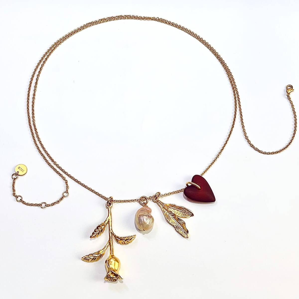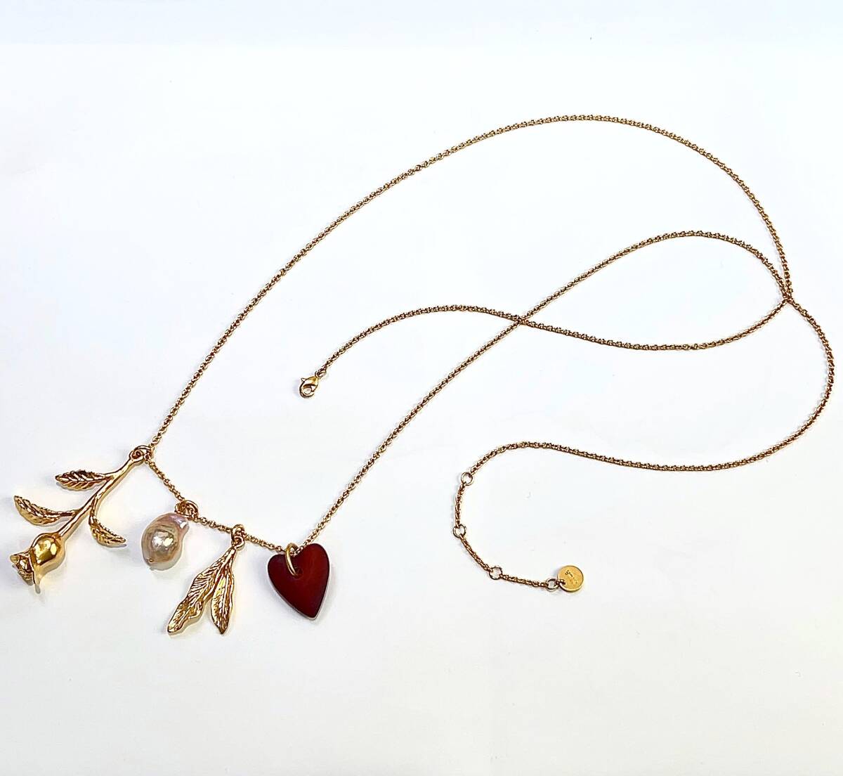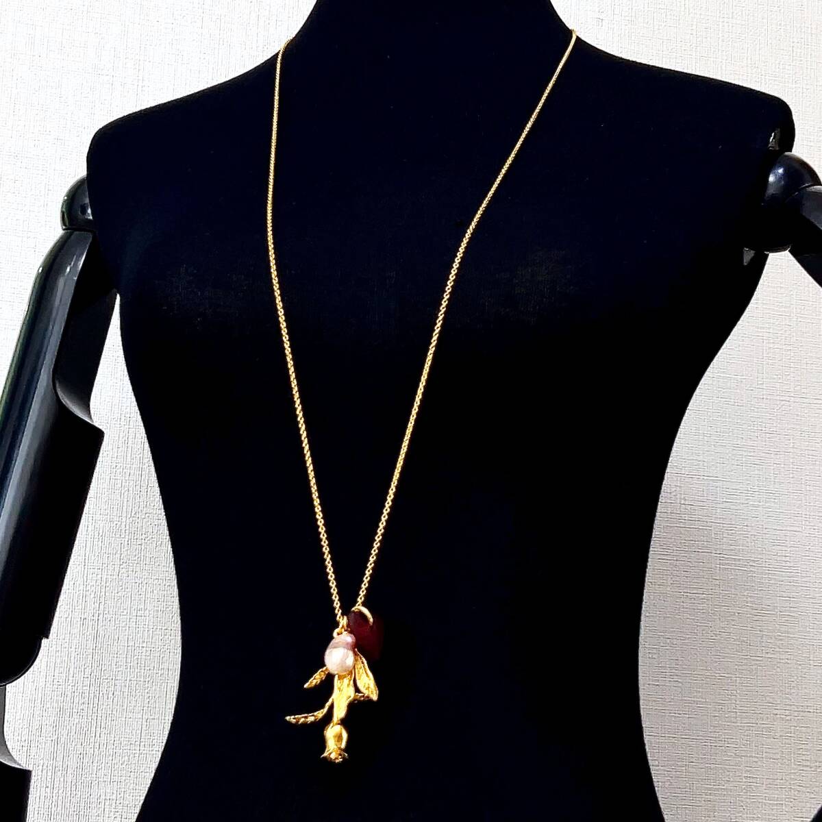 商品名:パール チューリップ ハート モチーフ ロング ネックレス