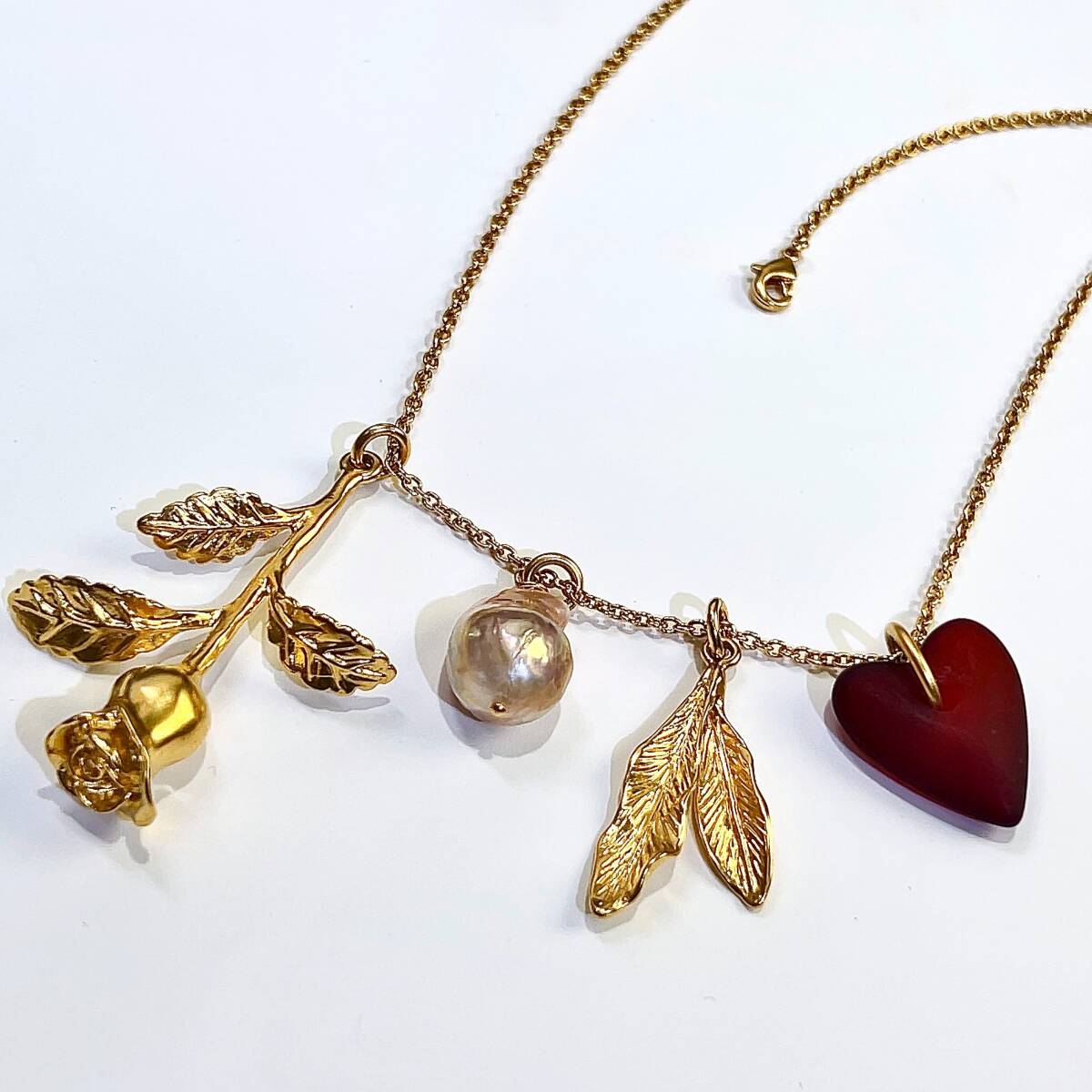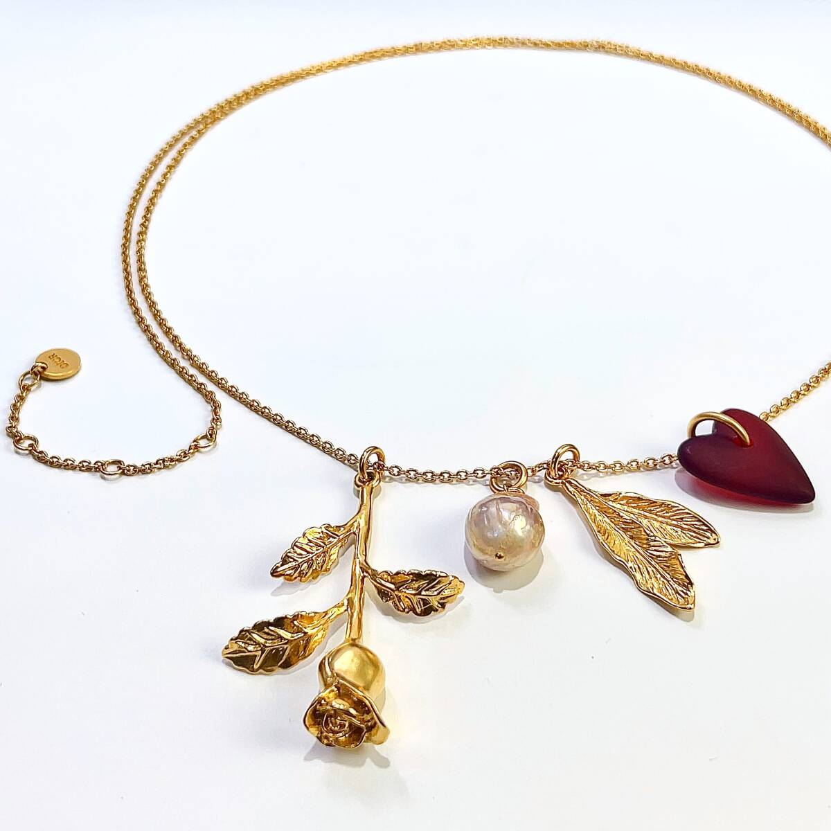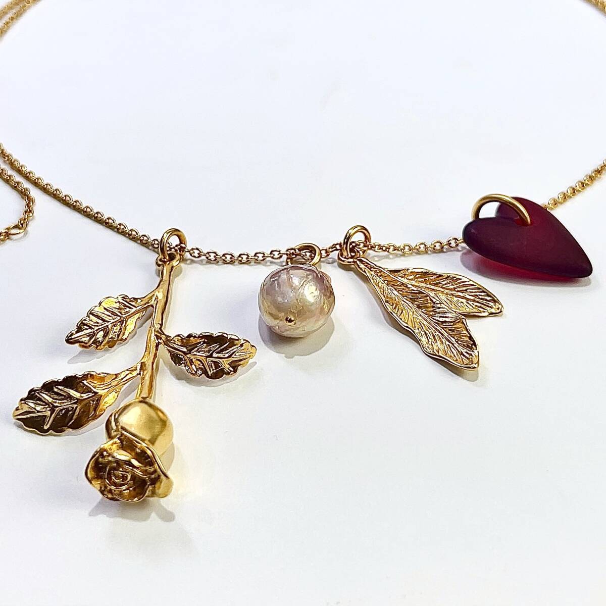 商品名:パール チューリップ ハート モチーフ ロング ネックレス