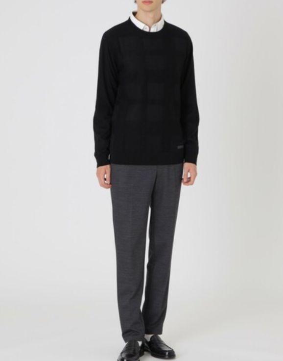 ハイゲージで編み上げたクルーネックニット。シャツとの相性も抜群で、様々なコーディネートにインナーとしても映える冬にマストな一着。フロントにはクレストブリッジチェック柄をシャドーで表現。ブラックレーネルならではのシンプルながら存在感あるニットです。素材には羊毛×アクリルの糸を使用。細い繊維で作り上げた糸を使用しているため、チクチクしづらく、しなやかな肌触りの編地に仕上がっています。糸に特殊な加工を施す事で、手洗い可能なニットに。