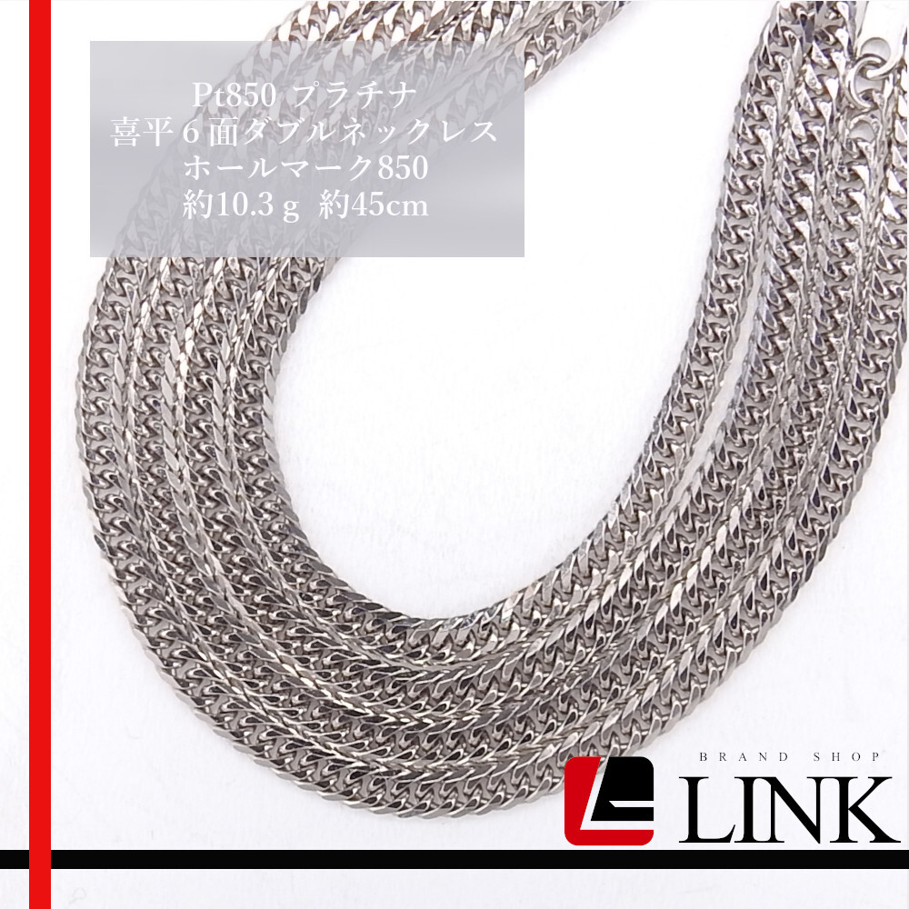 【美品】PT850 プラチナ 喜平6面ダブルネックレス 10.3g 45cm キヘイ ホールマーク850 チェーン