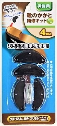 男性用。靴のかかと修理キット。かかと用ゴム4個・釘12本・ヤスリのセットです。