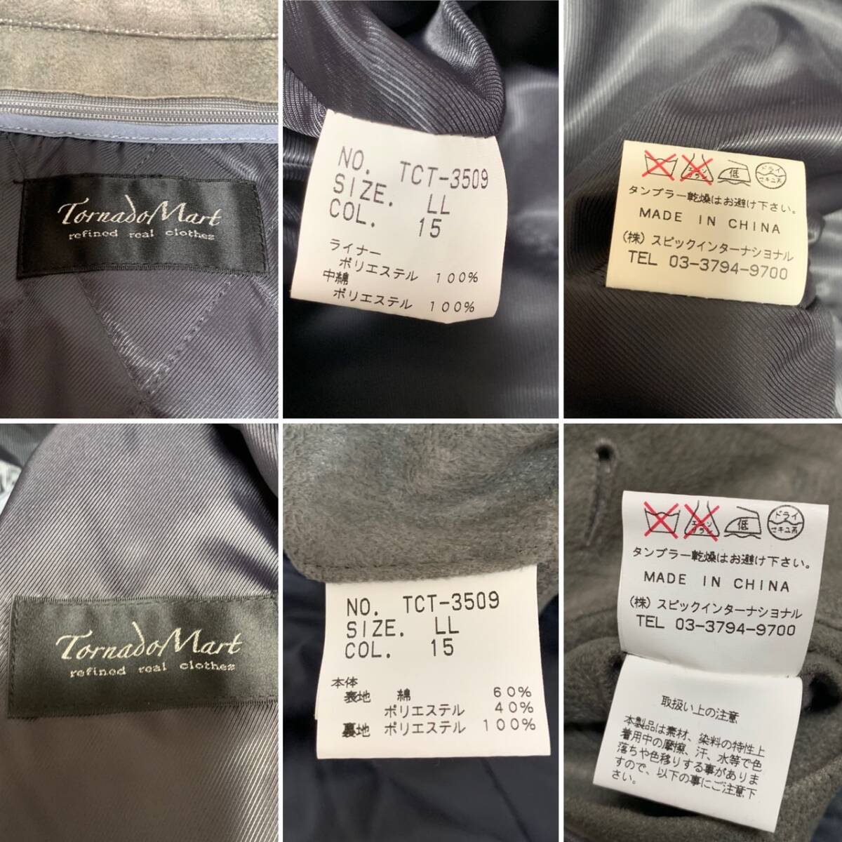 美品☆[TORNADO MART] 定価34,650 TCスエード スタンドカラー ヘアラインコート LL グレー ライナー付 TCT-3509 トルネードマート