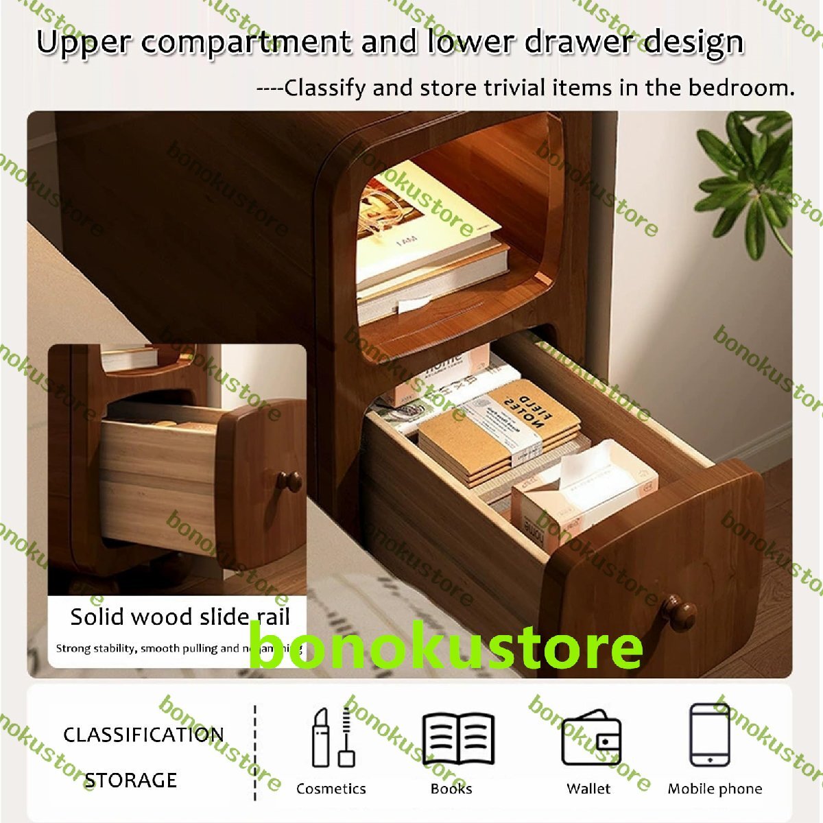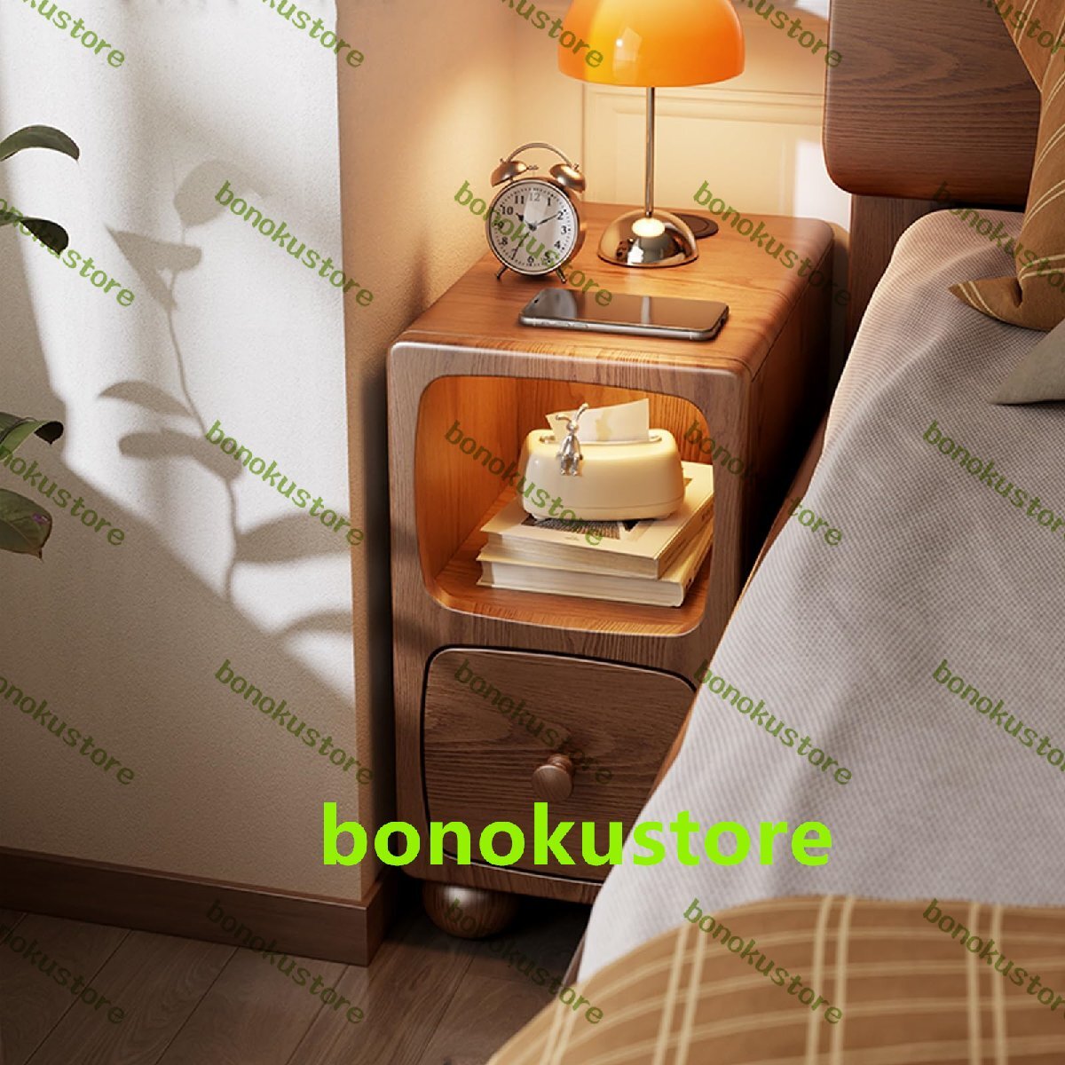 スマートナイトスタンド Bedside Table ベッドサイド 収納 ベッドサイドテーブル スリム 引き出し付き無垢材収納キャビネット ナイトテーブル リビングルーム 寝室 書斎用のモダンでスリムなエンドサイドテーブル 収納用キャビネット(Yellow 30cm/11.8in)