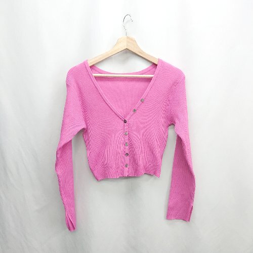 ◇ ⊂ mystic ミスティック 長袖 カーディガン サイズF ピンク レディース E