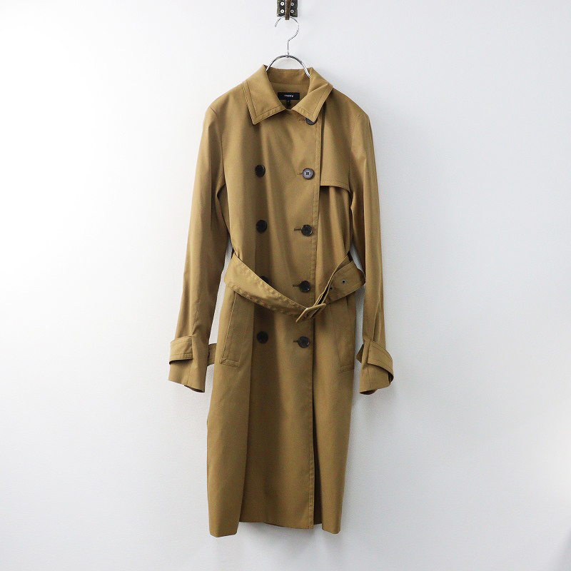 定価7.5万 セオリー Theory PFF TWILL STATEMENT TRENCH J トレンチコート P/ベージュ ロング【2400014233728】