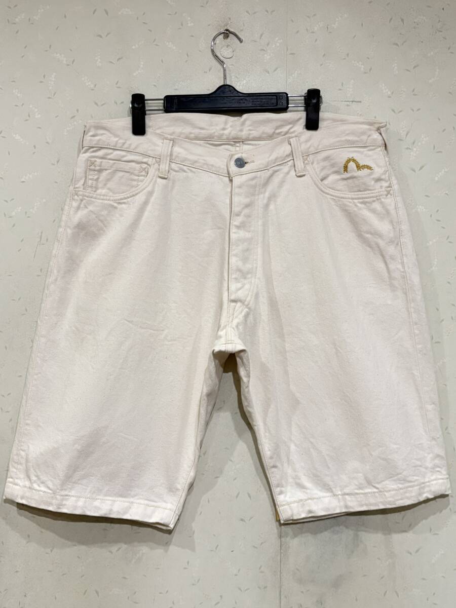 EVISU エヴィス エビス LOT2001 カモメゴールド刺繍 ハーフショートデニムパンツ  生成り 大きいサイズ 36           BJBE.A