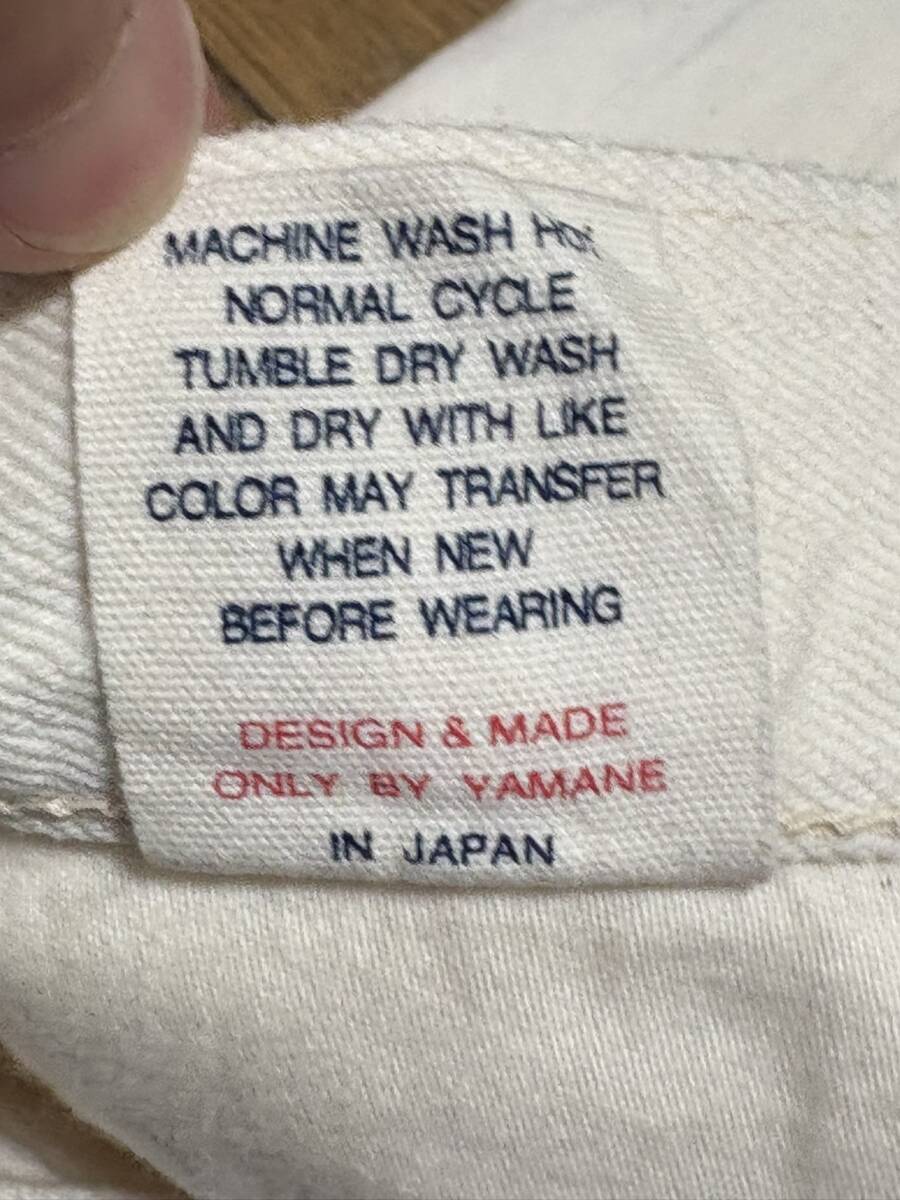 ぱっと見わかりずらいかとは思いますが、左バックポケット上部に一部色移りがあります(画像参照)