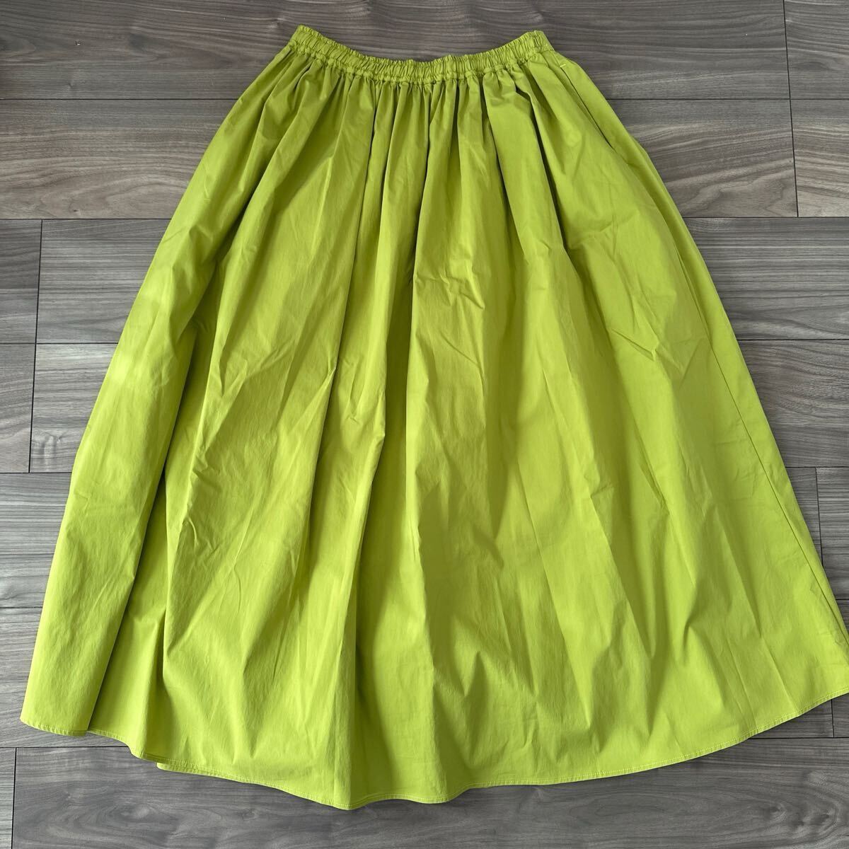 たっぷりとギャザーの入ったフレアスカートで、後ろウエストのみゴムが入った使用