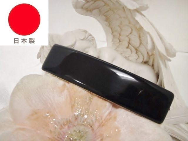 ♪ 新品 バレッタ 日本製『高品質/グロスエポ/ロングサイズ/GOLD縁/レクタングル/パールネイビー』♪