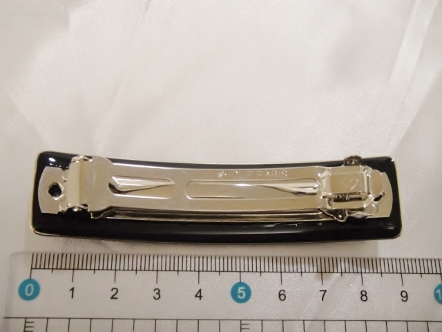 バレッタ本体、クリップ等にメッキ加工が施されておりますが経年劣化による色の変色が生じる場合がございます。