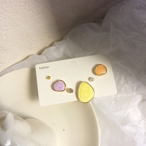ピアス カラフル 韓国 3 セット イヤリング ファッショナブル 女性 ドロップ オイル 幾何 新 イヤリング 5