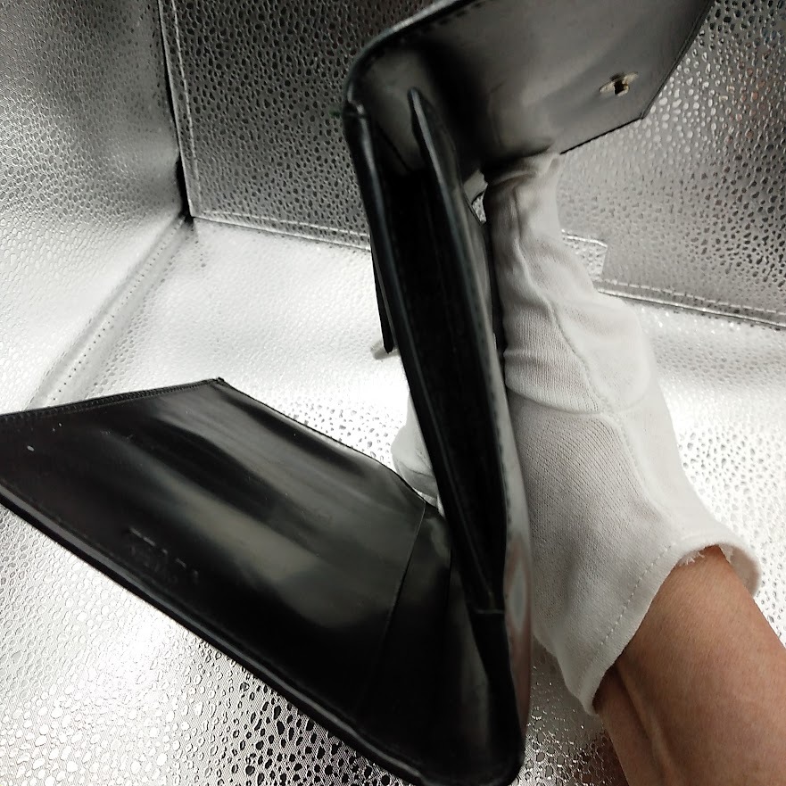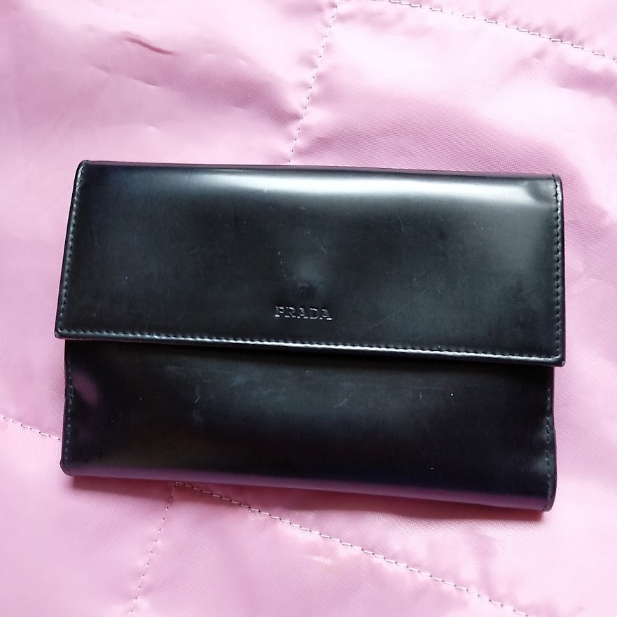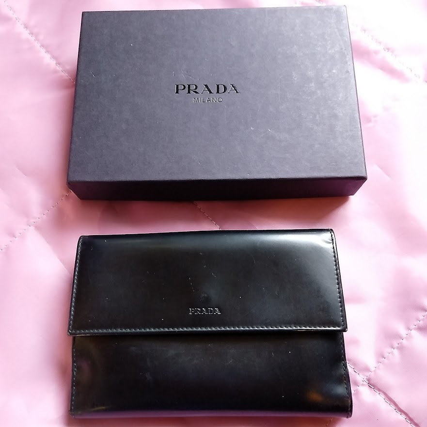プラダ PRADA Wホック 二つ折り財布 ブラック 付属品 箱