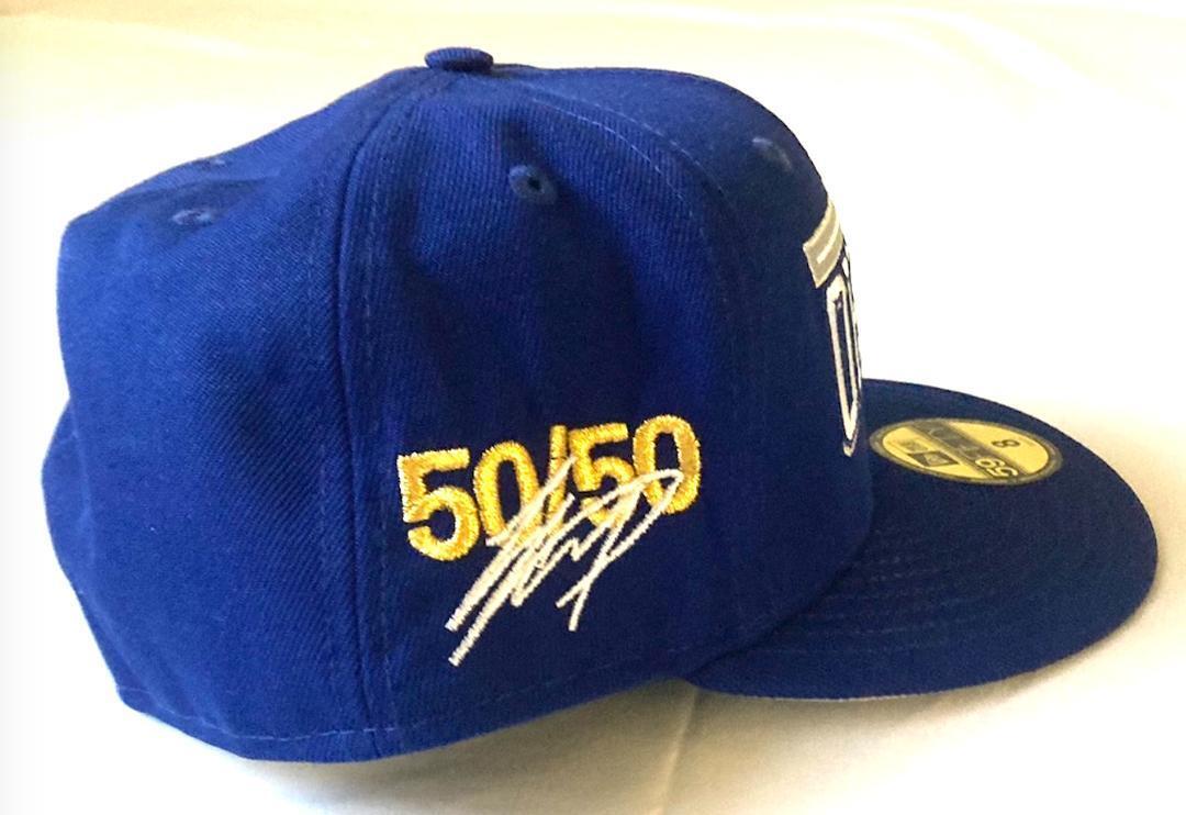 このキャップは、大谷翔平選手の50ホームラン/50盗塁を記念してリリースされた50/50限定モデルです。MLBオフィシャルのロサンゼルス・ドジャース 59FIFTY Fitted Hatで、大谷翔平選手のモデルとなっています。落ち着いたブルーの色合いと洗練されたデザインが特徴です。大谷選手のサインと50/50のロゴが刺繍されている、貴重な限定品となります。サイズは 8となっております。