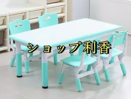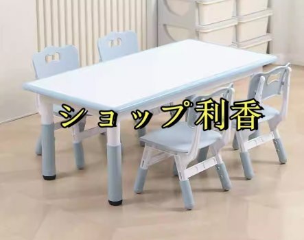 子供用テーブル 2~8歳用 キッズテーブルと4チェアセット 子供 机 椅子 セット子供の高さ調節プラスチックテーブル、幼稚園 耐荷重150KG