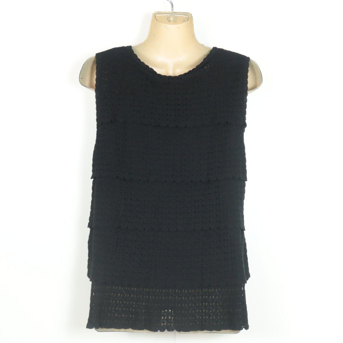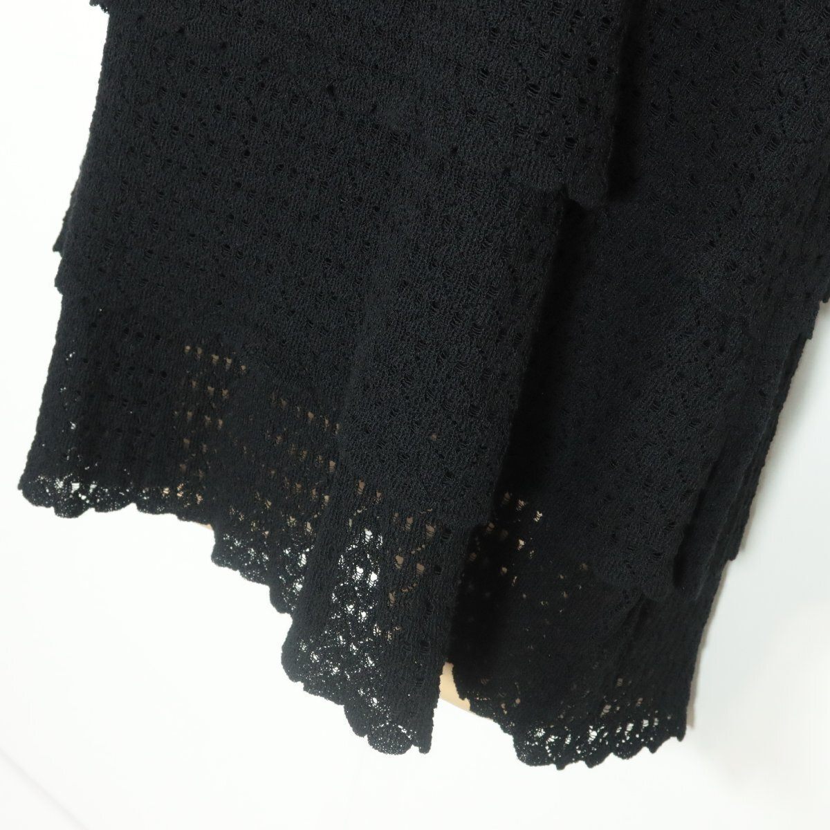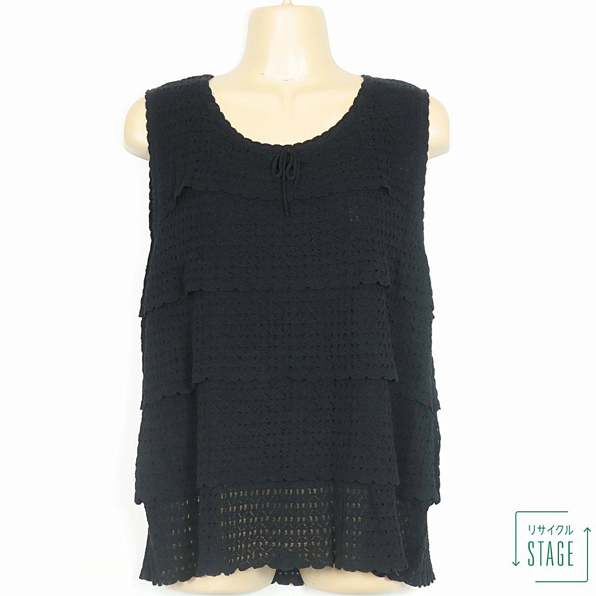 | 商品説明 | 【実寸約】 バスト94 着丈56(cm) 【サイズ表記】 4(11号) 【素材】 レーヨン89 ナイロン11 【状態】 使用感少なめの美品 【デザイン】 黒系 少し透け感のあるノースリーブカットソーです。 透かし編みニットの段々フリルが大人可愛いお品です。 これ一枚でもレイヤードでも、ロマンティックコーデに大活躍するアイテムです。 |