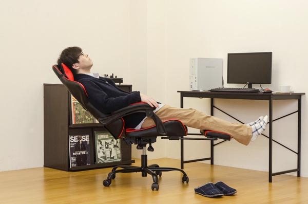 ハイバックバケットシート仕様のフルフラットにもなるレーシングオフィスチェア・レッド_ods