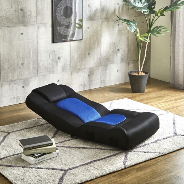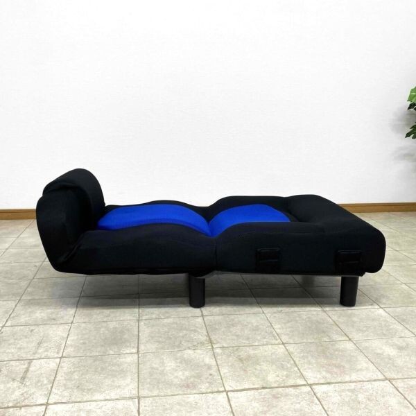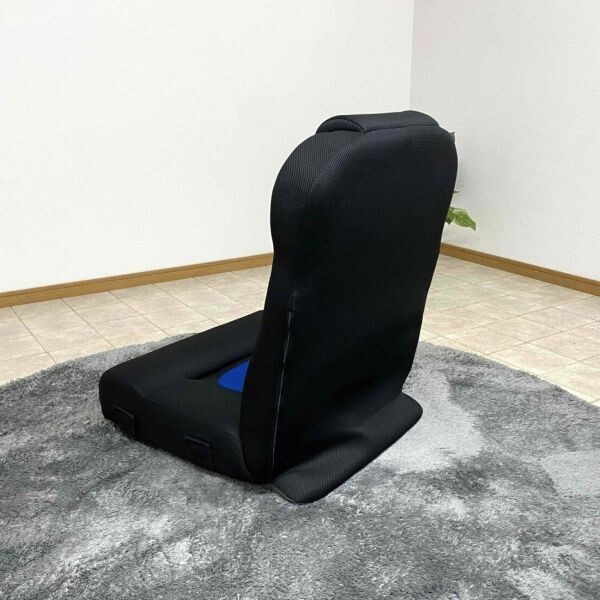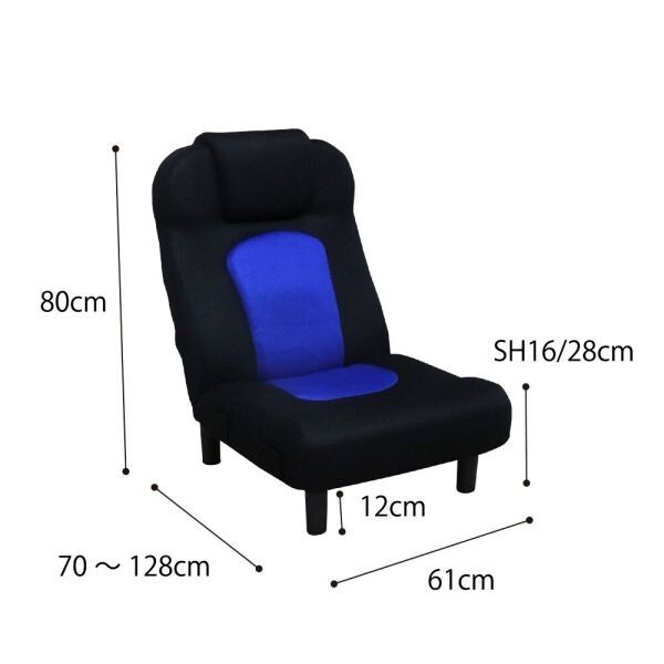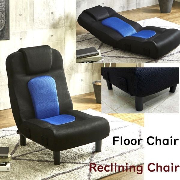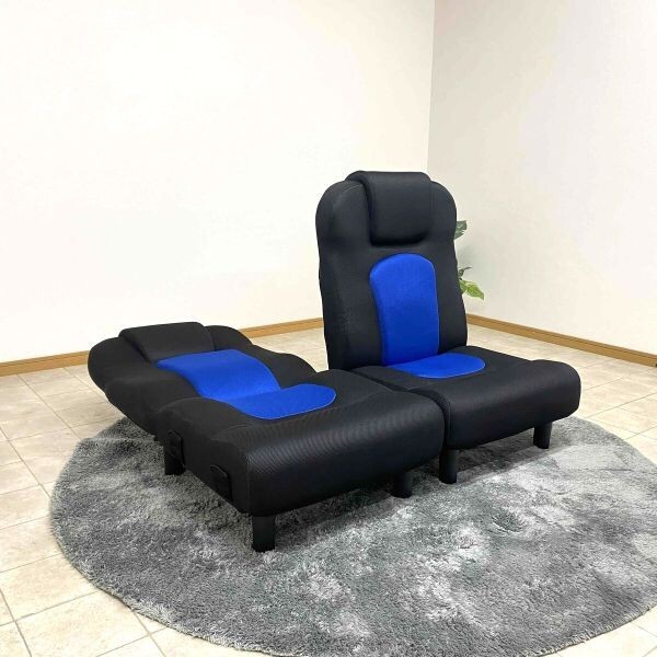 新品★後藤家具★ポケットコイル入り!42段階リクライニングソファー♪12cm脚取り外しでワイドフロアチェア/座椅子に【BLACK x BLUE/黒 青