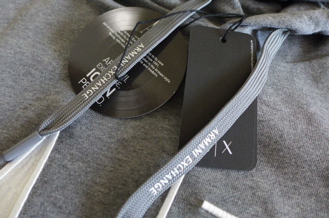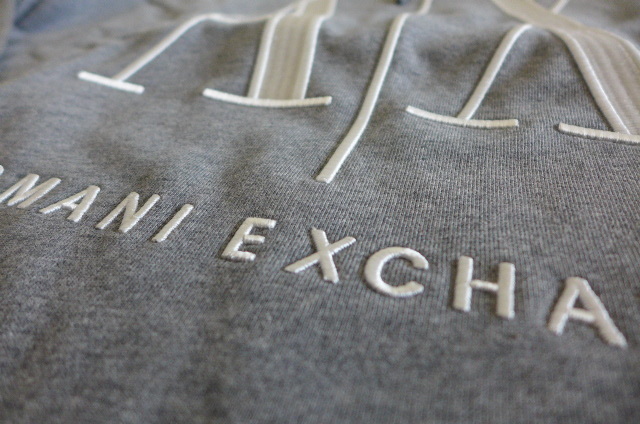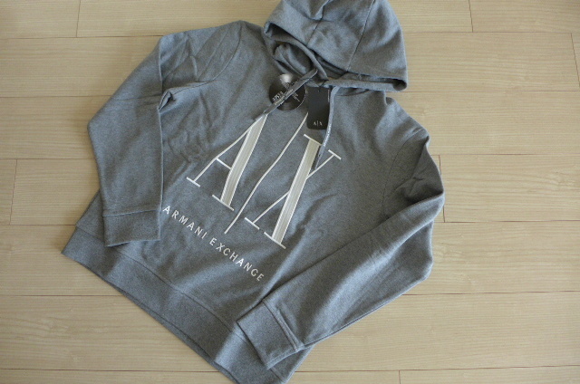 新品 即決 国内正規品 アルマーニ エクスチェンジ スウェットパーカ 刺繍ロゴ トレーナー フーディ サイズL グレー