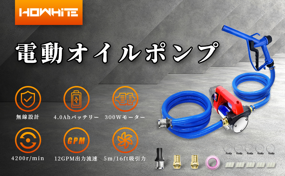 電動オイルチェンジャー オイルポンプ 45L/min 300W オイル交換 ポンプ 上抜き 給油ポンプ 軽量 高速 灯油ポンプ オイル抜き取り 抽出