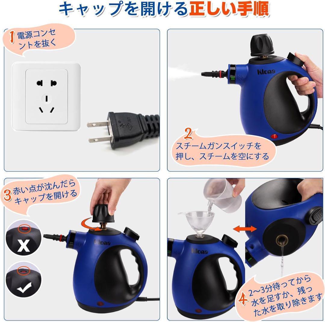 スチーマーは3分ですぐに加熱され、加圧された高温スチームを放出します。1050Wのパワー、350MLの水タンク容量(通常使用には250MLの水容量をお勧めします)、10分以上の連続運転時間。