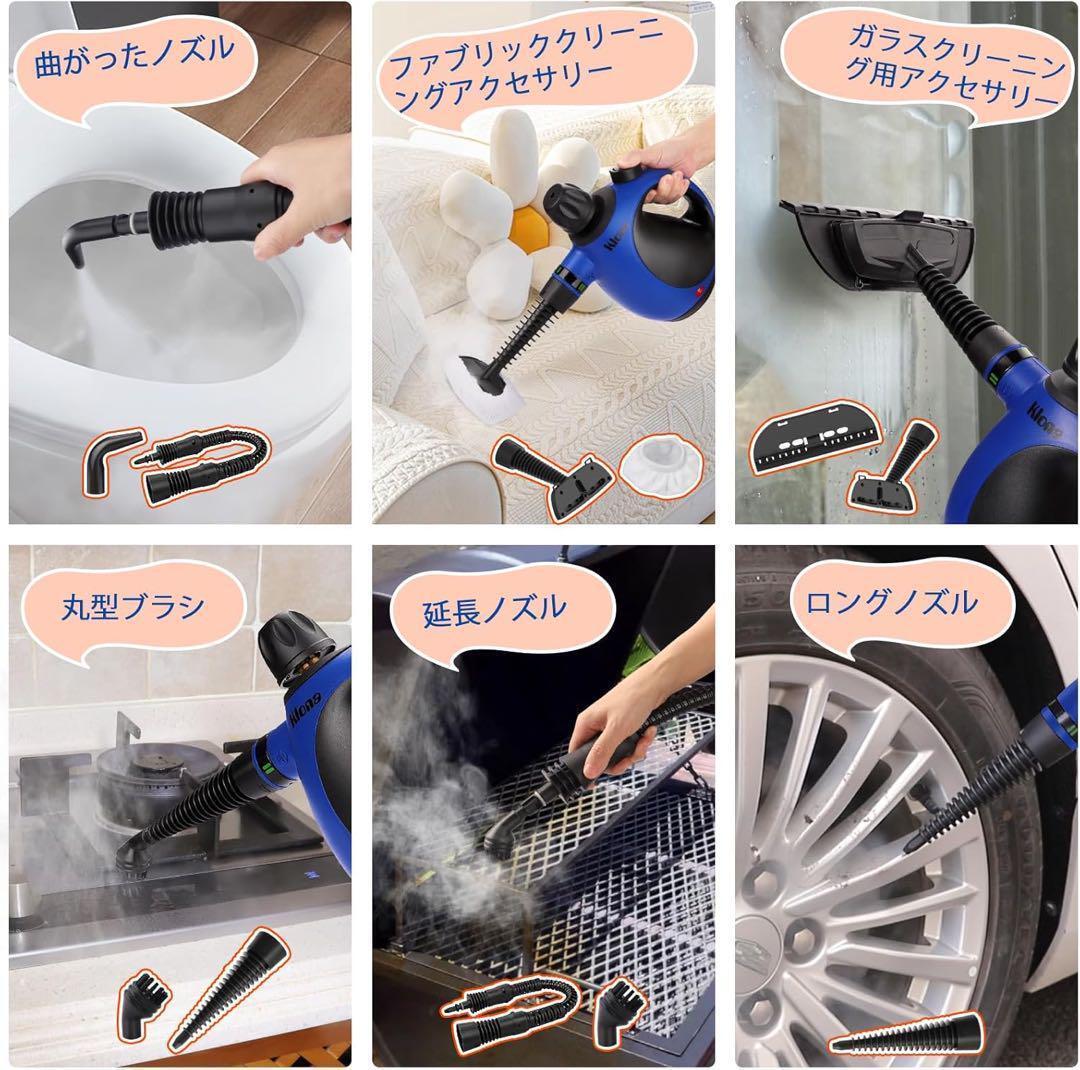 スチーマーは、クリーニングとアイロンがけの素晴らしい仕事をしてくれます。付属品10点セット:角度のついたノズル、曲げられるエクステンション、ブラシ付きノズル、布用スチーマーツール、窓/ドア用ゴムワイパーなど。キッチンシンク、畳、カウンタートップ、トイレ、バーベキューグリル、シャワーカーテン、床、子供のおもちゃ、ペットのマットレス、ソファ、車、衣類など。