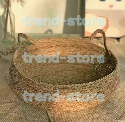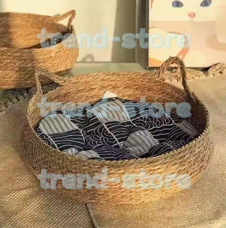 手編み猫ベッド 天然素材で編み上げ、手で作られた安全のロープとして素材、シンプルな円形デザインです。通気性良し、爽やかなペット夏用ベッドです、とても涼しく気持ちいいです。